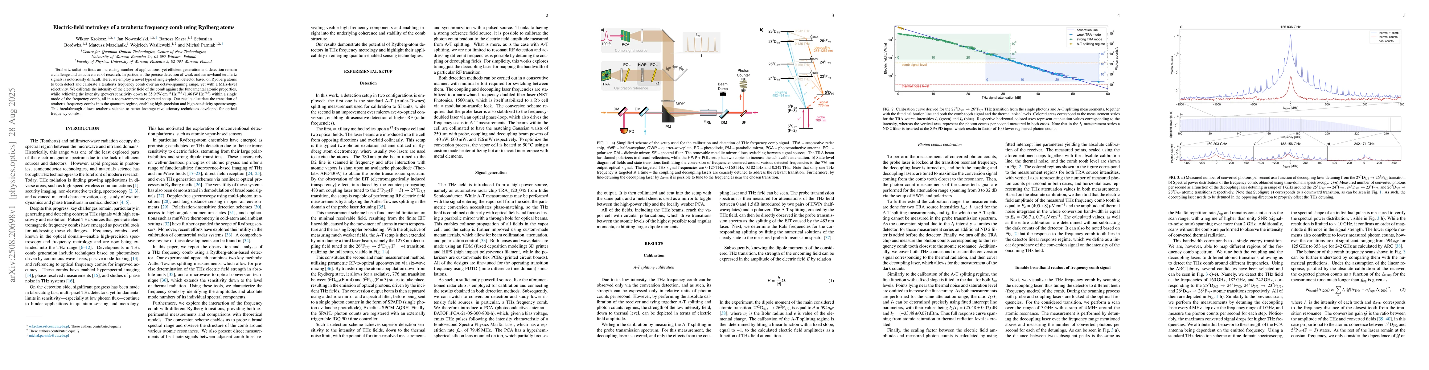 Terahertz radiation finds an increasing number of applications, yet efficient generation and detection remain a challenge and an active area of research. In particular, the precise detection of weak and narrowband terahertz signals is notoriously difficult. Here, we employ a novel type of single-photon detector based on Rydberg atoms to both detect and calibrate a terahertz frequency comb over an octave-spanning range, yet with a MHz-level selectivity. We calibrate the intensity of the electric field of the comb against the fundamental atomic properties, while achieving the intensity (power) sensitivity down to 35.9 $\mathrm{fW\ cm^{-2}\ Hz^{-0.5}}$ (1.46 $\mathrm{fW\ Hz^{-0.5}}$) within a single mode of the frequency comb, all in a room-temperature operated setup. Our results elucidate the transition of terahertz frequency combs into the quantum regime, enabling high-precision and high-sensitivity spectroscopy. This breakthrough allows terahertz science to better leverage revolutionary techniques developed for optical frequency combs.