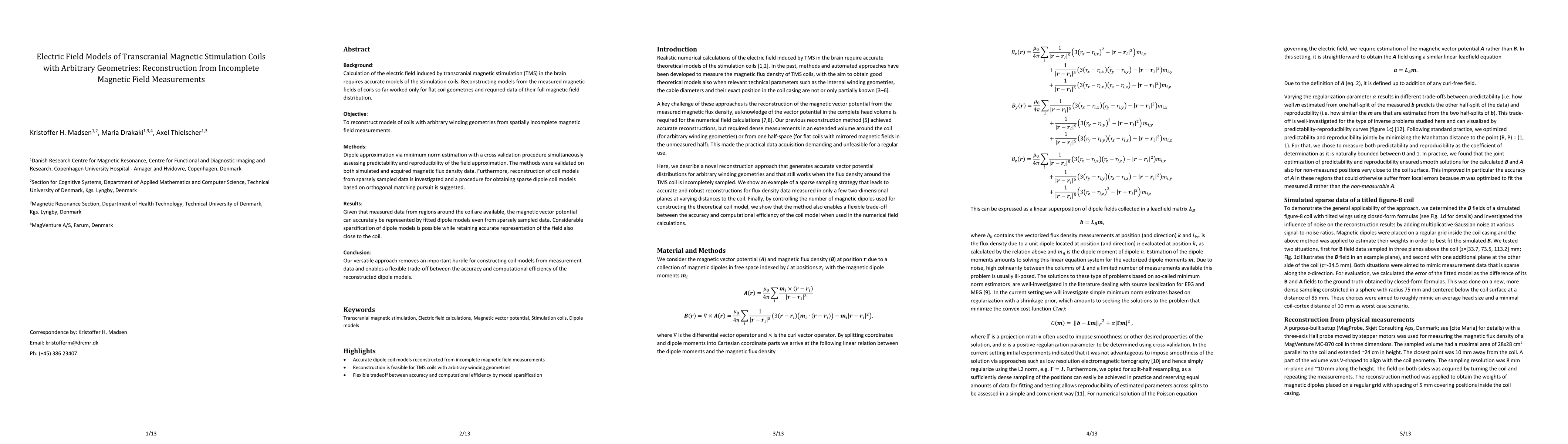 This paper presents a method for reconstructing electric field models of transcranial magnetic stimulation coils with arbitrary geometries from incomplete magnetic field measurements. Using dipole approximation and minimum norm estimation, the approach accurately represents the magnetic vector potential even from sparsely sampled data, enabling efficient and flexible coil model construction.