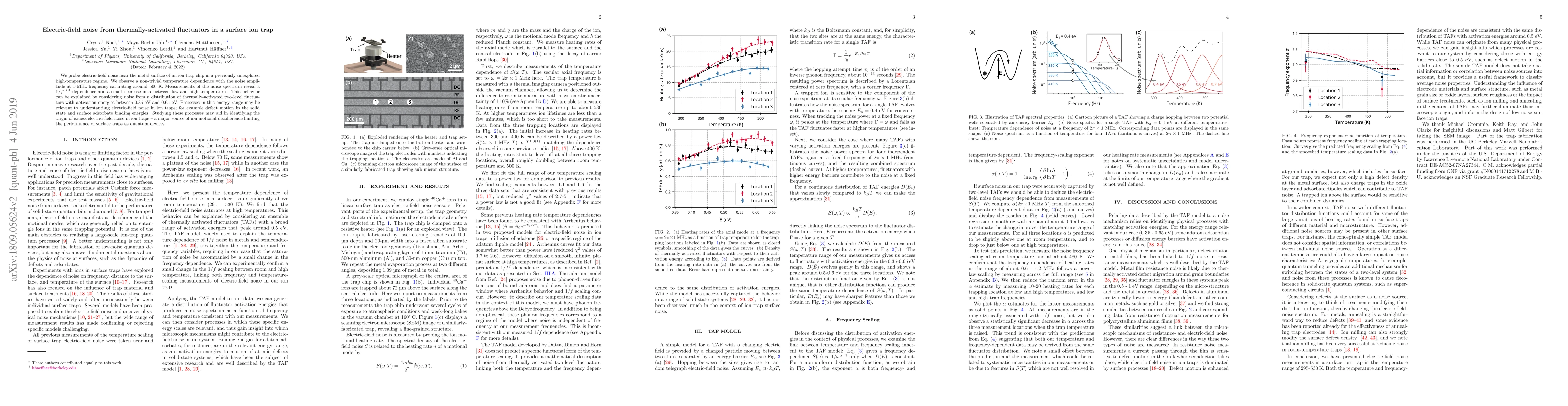 The study investigates electric-field noise from thermally-activated fluctuators in a surface ion trap, finding a $1/f^\alpha$ spectrum with a temperature-dependent exponent. This noise, saturating at high temperatures, stems from two-level fluctuators with activation energies relevant to understanding excess noise in ion traps.