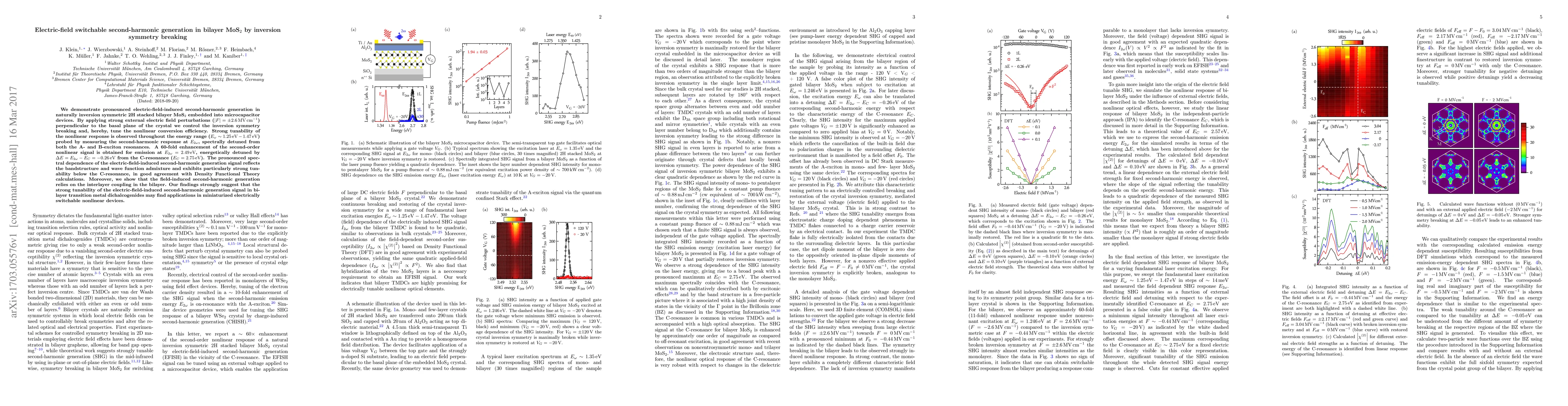 This paper demonstrates electric-field-induced second-harmonic generation in bilayer MoS$_2$ by breaking inversion symmetry, showing a 60-fold enhancement in signal tunability. The study highlights the potential for miniaturized, electrically switchable nonlinear devices.