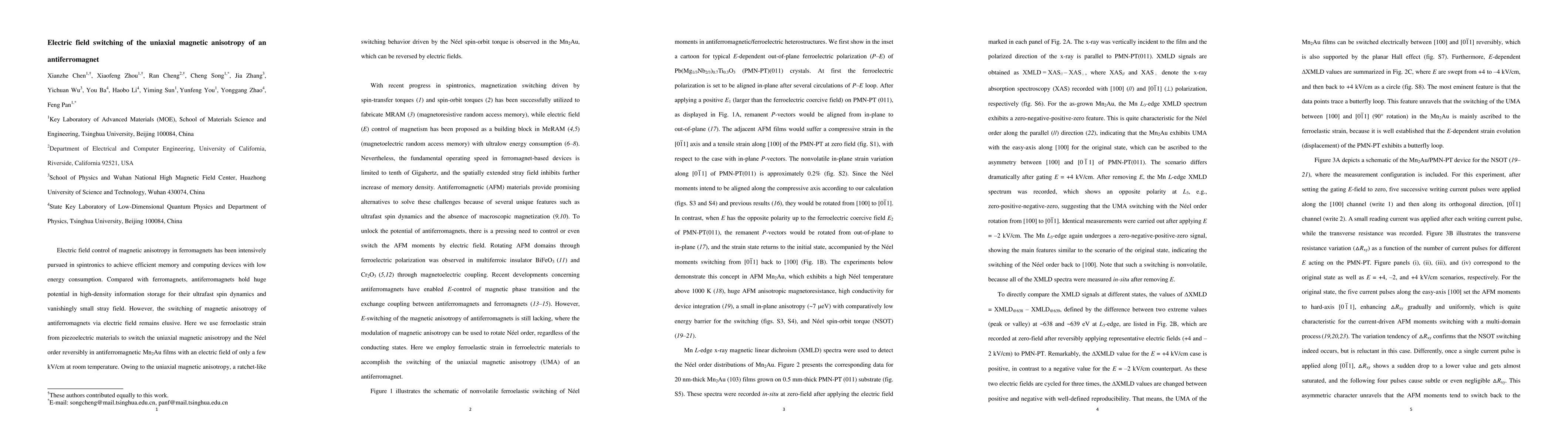 This paper demonstrates electric field control of the uniaxial magnetic anisotropy in antiferromagnetic Mn2Au films using ferroelastic strain from piezoelectric materials, achieving reversible switching at room temperature. The study reveals a ratchet-like switching behavior driven by N\'eel spin-orbit torque, which can be reversed by electric fields.