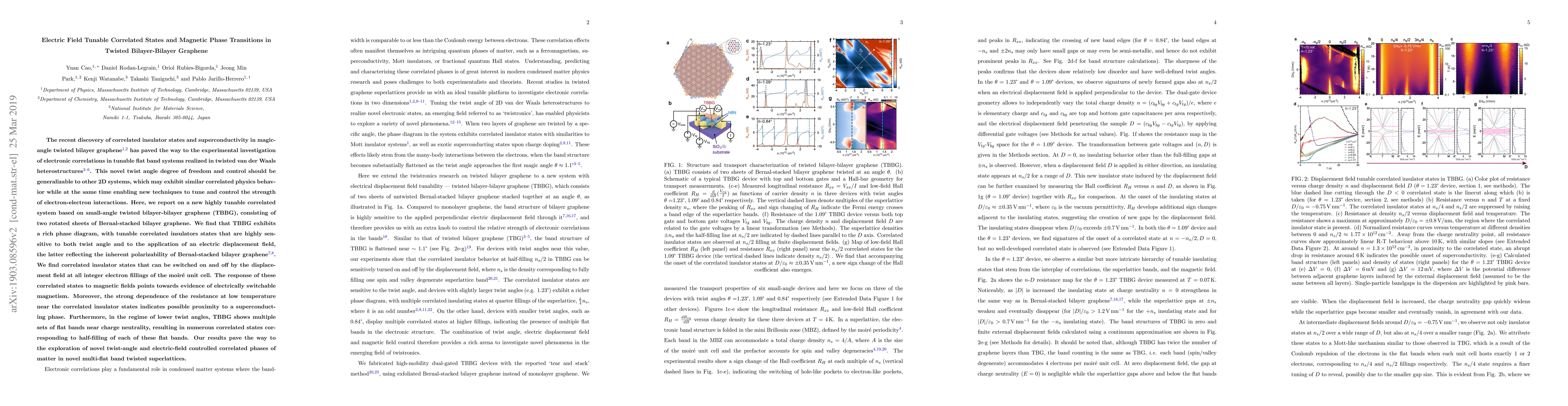 This paper investigates small-angle twisted bilayer-bilayer graphene (TBBG), revealing a rich phase diagram with tunable correlated insulator states sensitive to twist angle and electric fields. The study finds evidence of electrically switchable magnetism and potential proximity to superconductivity, while multiple flat bands indicate numerous correlated states near charge neutrality.