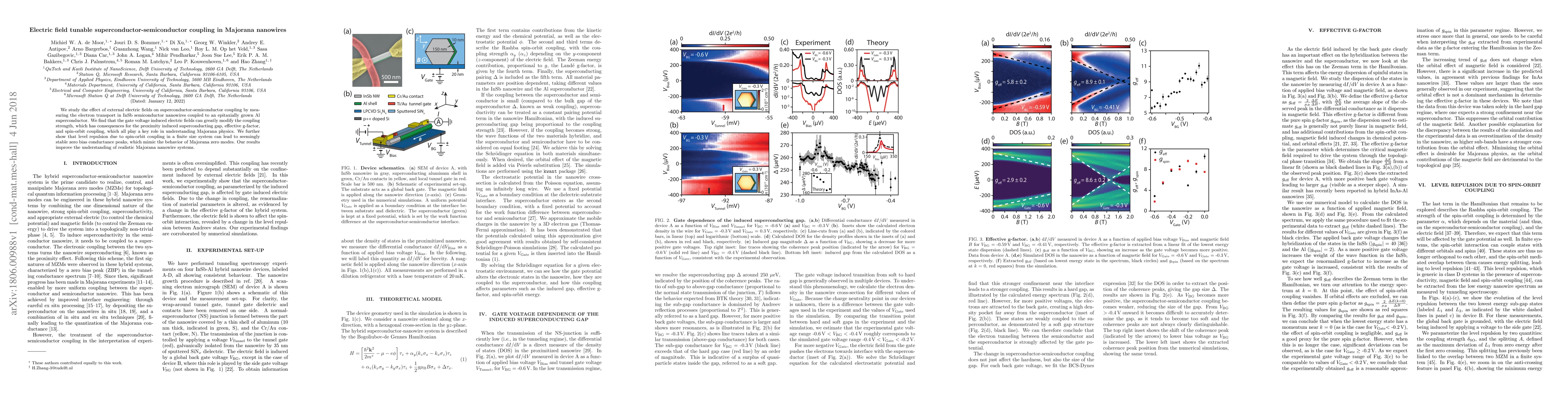 This study investigates how external electric fields, manipulated via gate voltage, affect superconductor-semiconductor coupling in InSb nanowires coupled with an Al superconductor, revealing modifications in superconducting gap, g-factor, and spin-orbit coupling. It also demonstrates how spin-orbit coupling can lead to zero bias conductance peaks, simulating Majorana zero modes, thus enhancing comprehension of Majorana physics in practical nanowire systems.