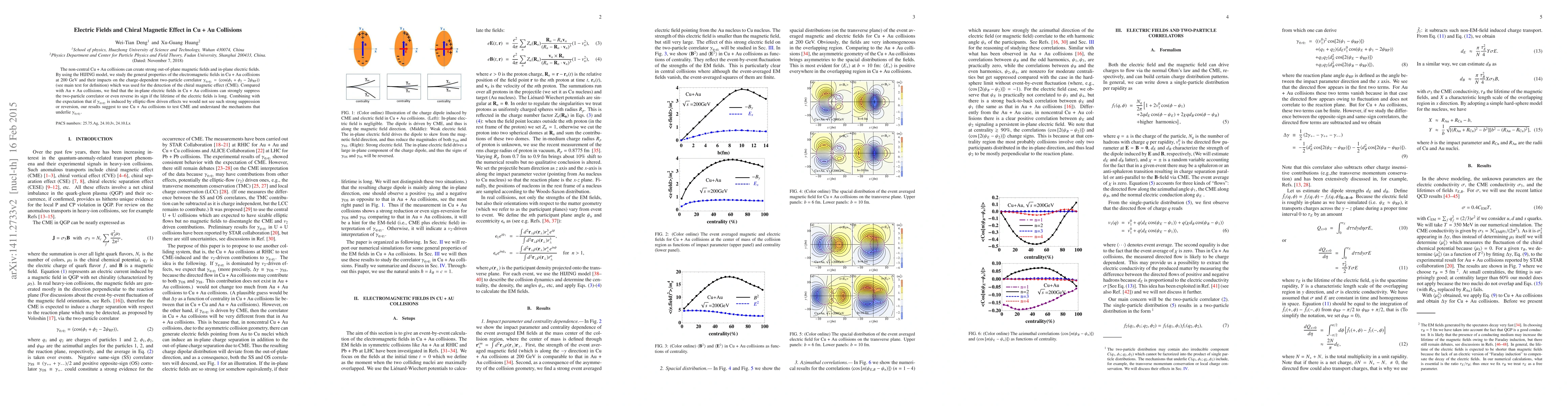 This study investigates the electromagnetic fields in non-central Cu + Au collisions at 200 GeV, finding that in-plane electric fields can strongly suppress or reverse the charge-dependent two-particle correlator, suggesting Cu + Au collisions as a useful test for the chiral magnetic effect.