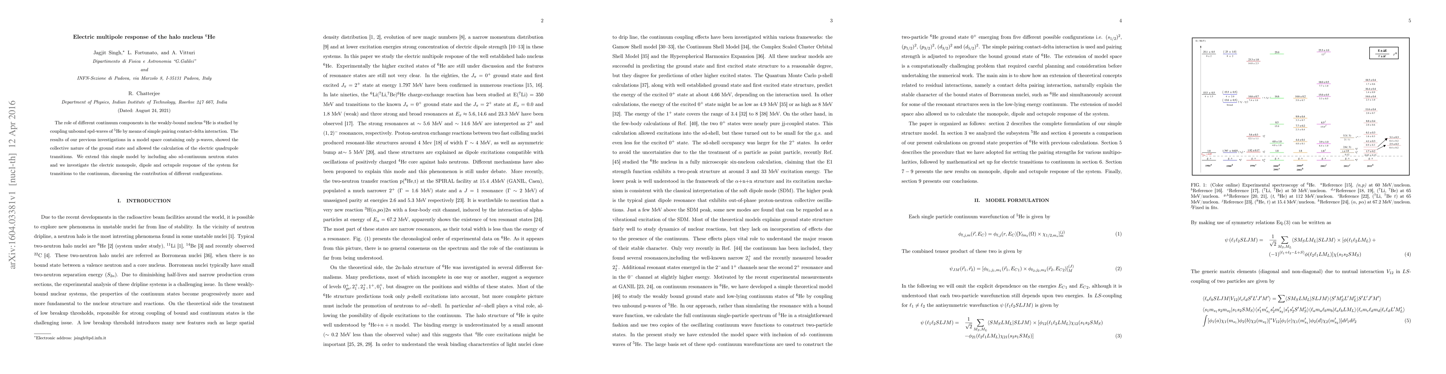 The role of different continuum components in the weakly-bound nucleus $^6$He is studied by coupling unbound spd-waves of $^5$He by means of simple pairing contact-delta interaction. The results of our previous investigations in a model space containing only p-waves, showed the collective nature of the ground state and allowed the calculation of the electric quadrupole transitions. We extend this simple model by including also sd-continuum neutron states and we investigate the electric monopole, dipole and octupole response of the system for transitions to the continuum, discussing the contribution of different configurations.