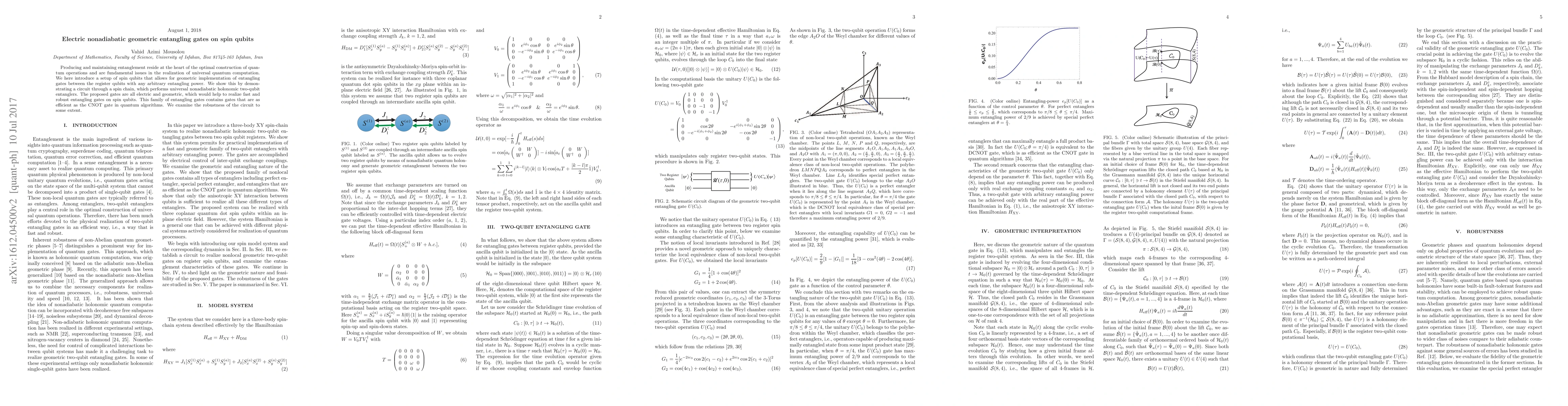 This paper proposes a method for implementing fast and robust electric nonadiabatic geometric entangling gates on spin qubits using a spin chain circuit. The geometric entangling gates demonstrated are universal and as efficient as the CNOT gate for quantum algorithms, with some examination of the circuit's robustness.