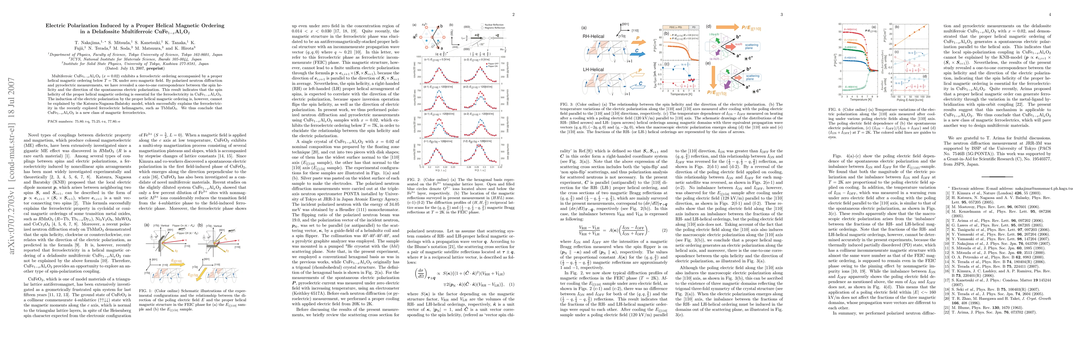 This study reveals that CuFe1-xAlxO2 (x=0.02) exhibits ferroelectricity linked to a proper helical magnetic ordering below 7K. The findings suggest that the spin helicity drives the electric polarization, classifying CuFe1-xAlxO2 as a new type of magnetic ferroelectric not explained by existing models.