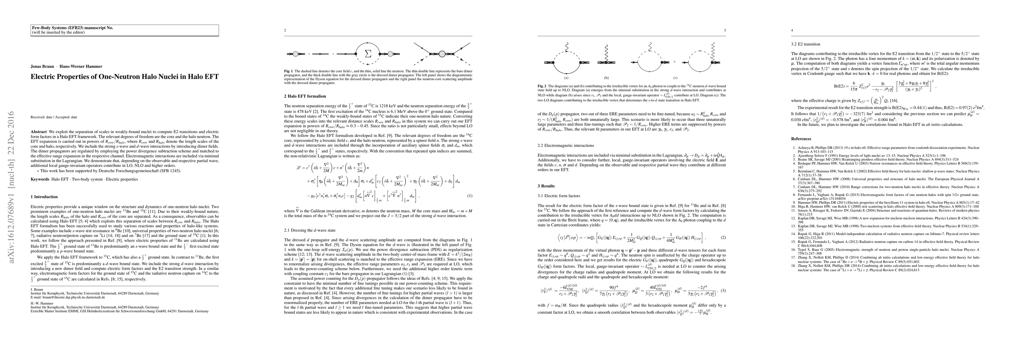 We exploit the separation of scales in weakly-bound nuclei to compute E2 transitions and electric form factors in a Halo EFT framework. The relevant degrees of freedom are the core and the halo neutron. The EFT expansion is carried out in powers of $R_{core}/R_{halo}$, where $R_{core}$ and $R_{halo}$ denote the length scales of the core and halo, respectively. We include the strong $s$-wave and $d$-wave interactions by introducing dimer fields. The dimer propagators are regulated by employing the power divergence subtraction scheme and matched to the effective range expansion in the respective channel.Electromagnetic interactions are included via minimal substitution in the Lagrangian. We demonstrate that, depending on the observable and respective partial wave, additional local gauge-invariant operators contribute in LO, NLO and higher orders.