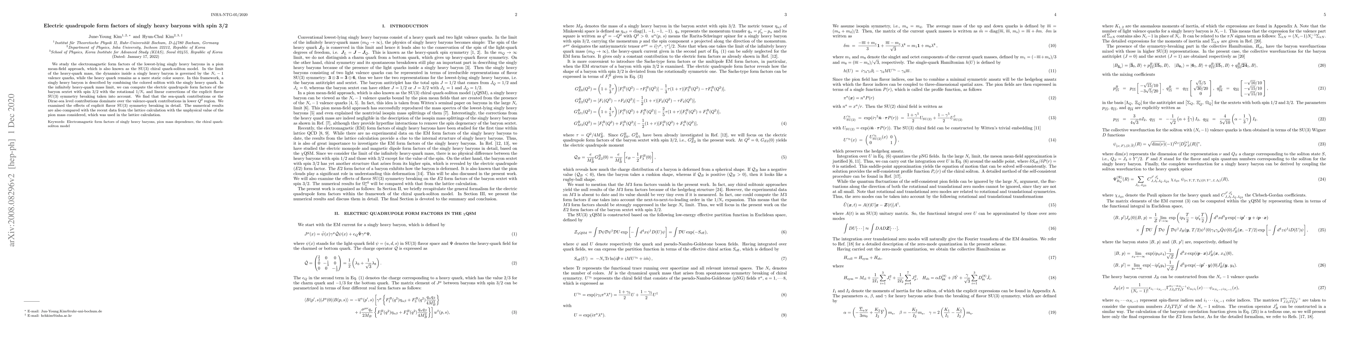 We study the electromagnetic form factors of the lowest-lying singly heavy baryons in a pion mean-field approach, which is also known as the SU(3) chiral quark-soliton model. In the limit of the heavy-quark mass, the dynamics inside a singly heavy baryon is governed by the $N_c-1$ valence quarks, while the heavy quark remains as a mere static color source. In this framework, a singly heavy baryon is described by combining the colored soliton with the singly heavy quark. In the infinitely heavy-quark mass limit, we can compute the electric quadrupole form factors of the baryon sextet with spin 3/2 with the rotational $1/N_c$ and linear corrections of the explicit flavor SU(3) symmetry breaking taken into account. We find that the sea-quark contributions or the Dirac-sea level contributions dominate over the valence-quark contributions in lower $Q^2$ region. We examined the effects of explicit flavor SU(3) symmetry breaking in detail. The numerical results are also compared with the recent data from the lattice calculation with the unphysical value of the pion mass considered, which was used in the lattice calculation.