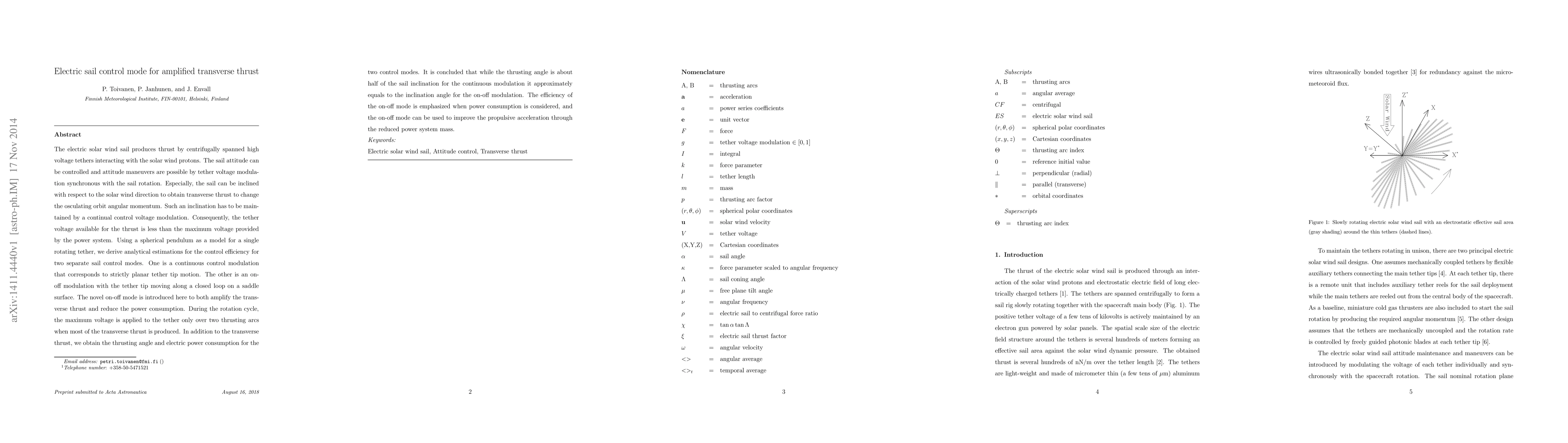 This paper explores electric sail control modes for generating amplified transverse thrust by modulating tether voltages. It introduces an on-off control mode that maximizes thrust efficiency and minimizes power consumption compared to continuous modulation, achieving comparable thrusting angles to sail inclination while using less power.