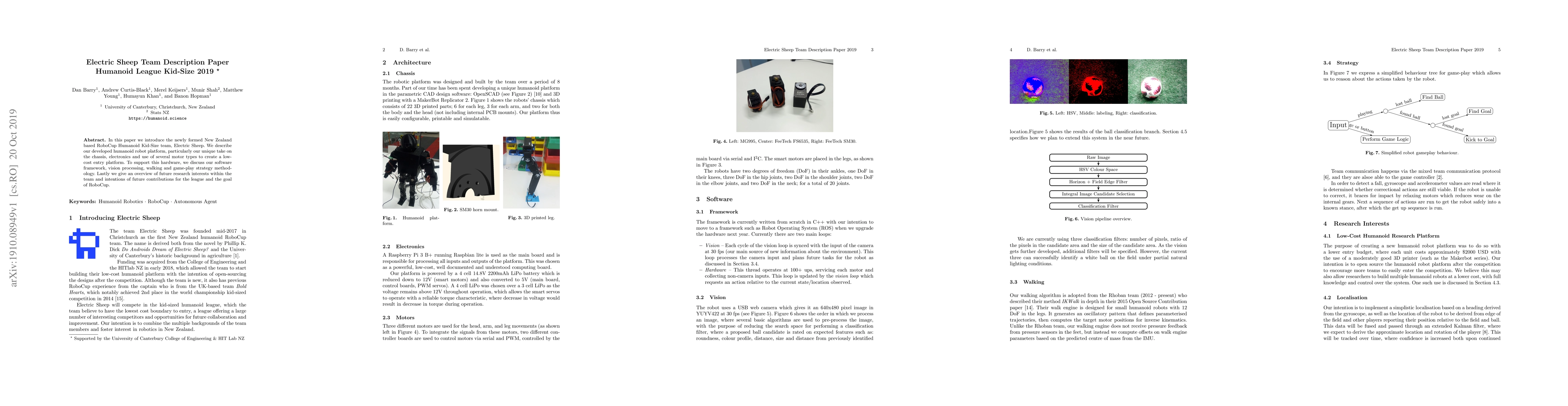 The Electric Sheep team introduces a low-cost humanoid robot platform for the RoboCup Humanoid League Kid-Size competition, featuring a unique chassis design and software framework for vision processing and gameplay strategy.