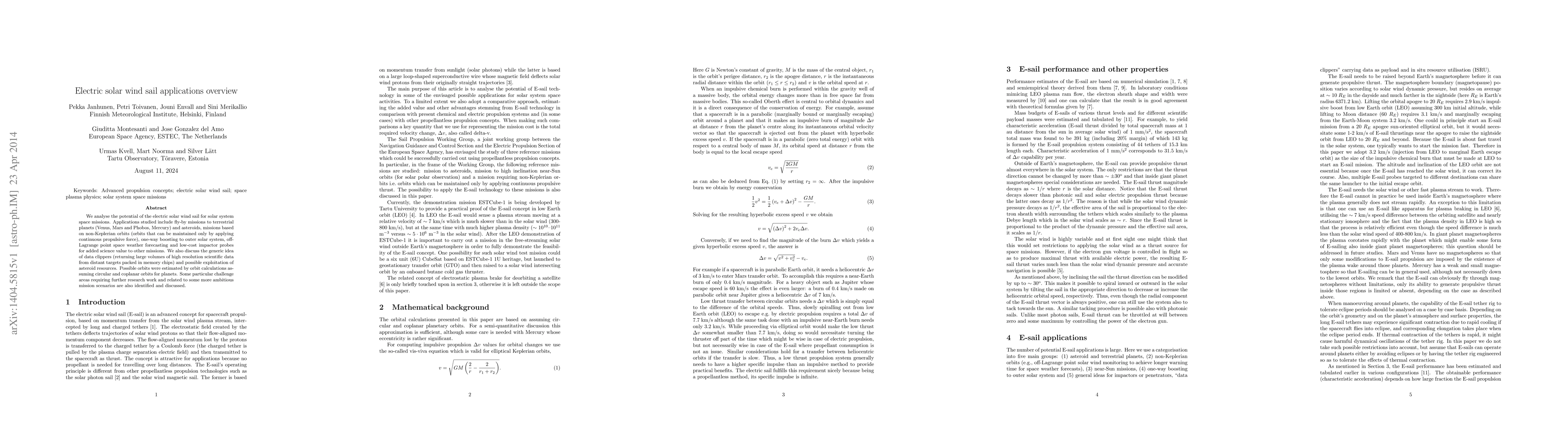 The paper presents a comprehensive analysis of the E-sail's potential for various solar system missions, including detailed delta-v calculations, orbit estimations, and discussions on mission-specific challenges.