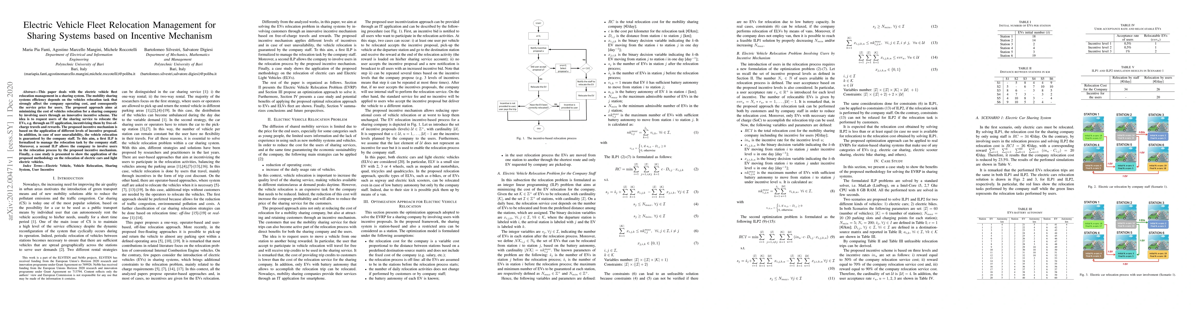 This paper proposes an incentive mechanism to manage the relocation of electric vehicles in sharing systems, aiming to minimize relocation costs by involving users through free travels and rewards. The approach includes two integer linear programming models to optimize relocation tasks by staff and incentivized users, demonstrated through a case study.