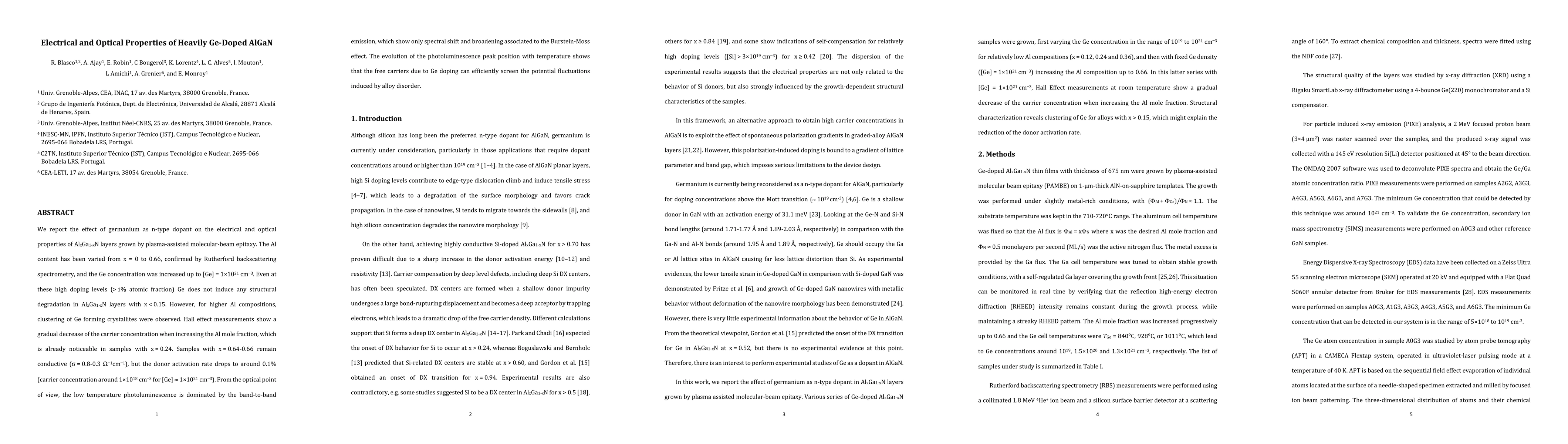 Research shows that germanium doping improves electrical properties of AlGaN layers but leads to crystallite formation at high aluminum content, affecting conductivity and optical properties.