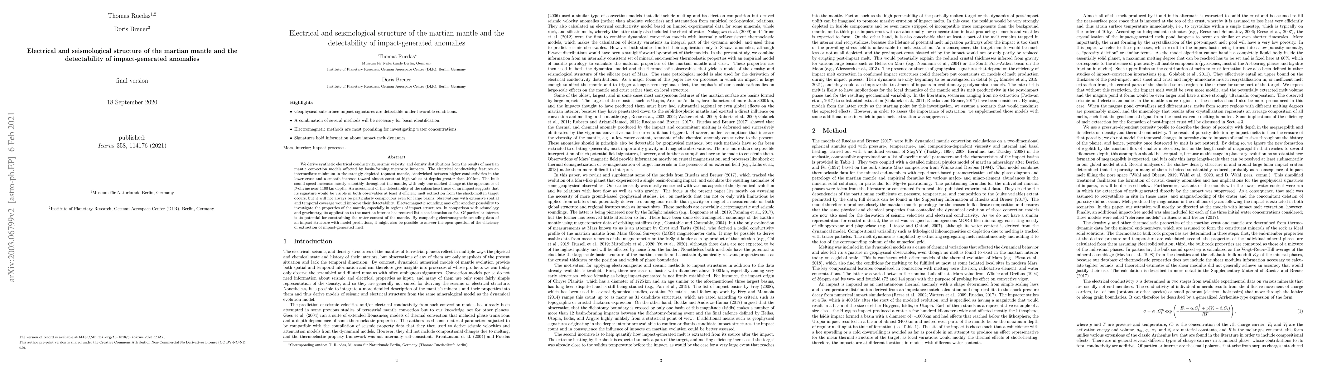This paper models the electrical and seismological structure of Mars' mantle, influenced by basin-forming impacts, and assesses the detectability of impact-induced anomalies. It finds that while impact signatures may be visible in both electrical conductivity and seismic velocity, they may not always be conspicuous, necessitating extensive spatial and temporal observations.