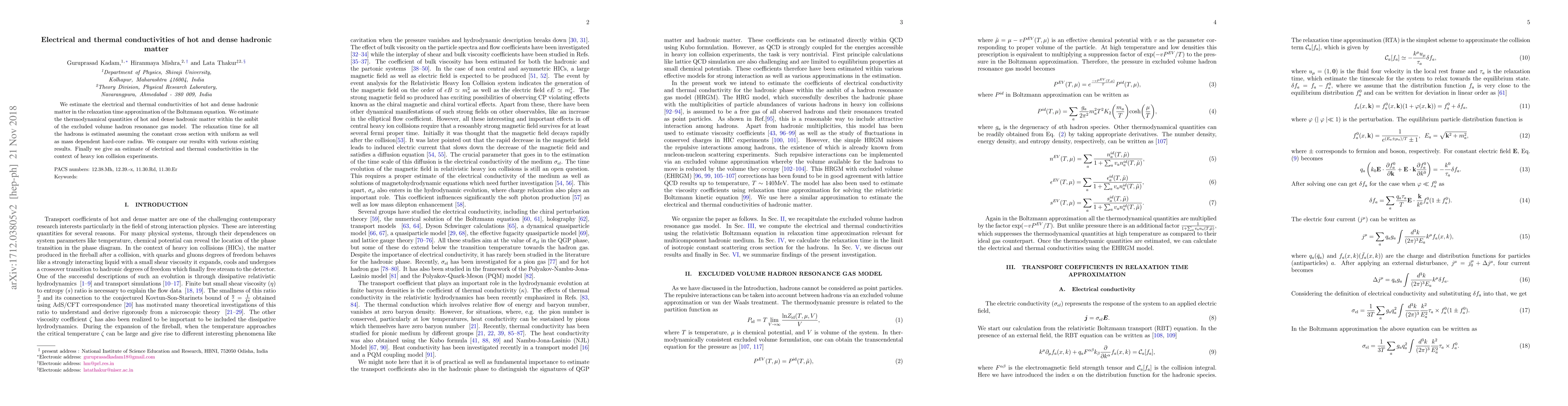 This paper estimates electrical and thermal conductivities of hot and dense hadronic matter using the Boltzmann equation and the excluded volume hadron resonance gas model, comparing results to existing studies and providing estimates relevant to heavy ion collision experiments.
