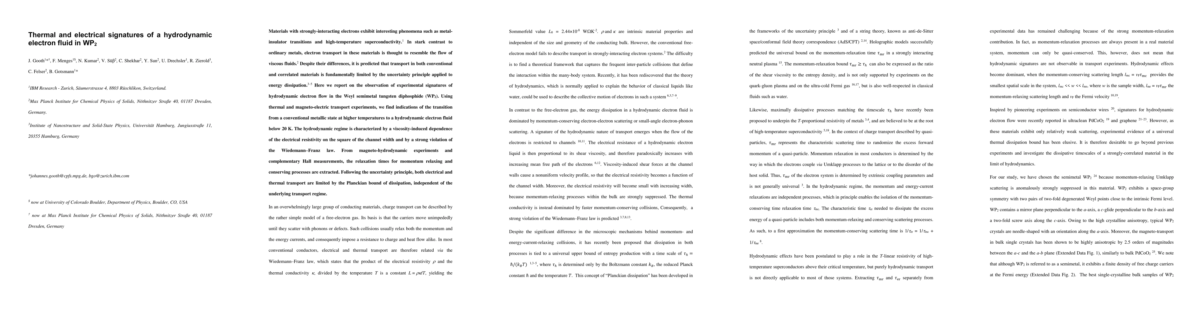 Materials with strongly-correlated electrons exhibit interesting phenomena such as metal-insulator transitions and high-temperature superconductivity. In stark contrast to ordinary metals, electron transport in these materials is thought to resemble the flow of viscous fluids. Despite their differences, it is predicted that transport in both, conventional and correlated materials, is fundamentally limited by the uncertainty principle applied to energy dissipation. Here we discover hydrodynamic electron flow in the Weyl-semimetal tungsten phosphide (WP2). Using thermal and magneto-electric transport experiments, we observe the transition from a conventional metallic state, at higher temperatures, to a hydrodynamic electron fluid below 20 K. The hydrodynamic regime is characterized by a viscosity-induced dependence of the electrical resistivity on the square of the channel width, and by the observation of a strong violation of the Wiedemann-Franz law. From magneto-hydrodynamic experiments and complementary Hall measurements, the relaxation times for momentum and thermal energy dissipating processes are extracted. Following the uncertainty principle, both are limited by the Planckian bound of dissipation, independent of the underlying transport regime.