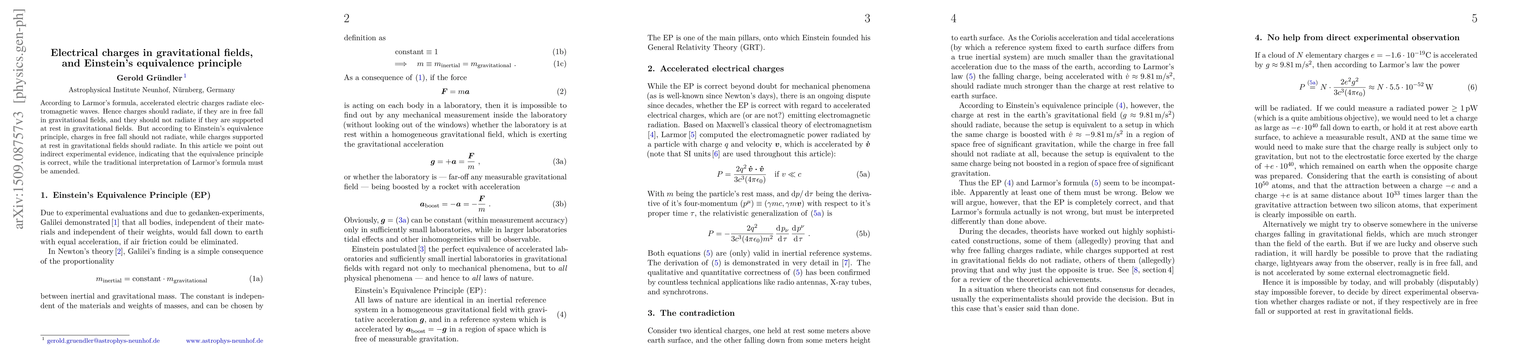This paper explores the discrepancy between electromagnetic radiation from accelerated electric charges and Einstein's equivalence principle, suggesting that indirect experimental evidence supports the equivalence principle over the traditional interpretation of Larmor's formula. The conclusion is that the traditional interpretation of Larmor's formula must be revised.