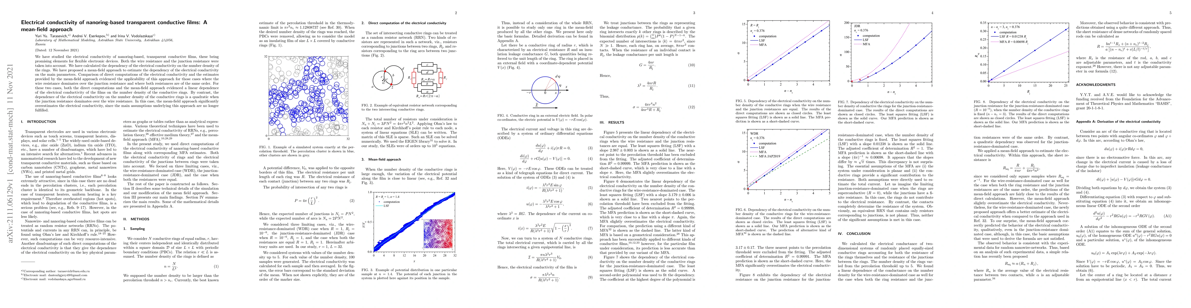 This paper investigates the electrical conductivity of nanoring-based transparent conductive films using a mean-field approach, finding linear dependence on ring density when wire resistance dominates, and quadratic dependence when junction resistance is higher. The mean-field approach is effective under certain conditions but fails when junction resistance predominates.