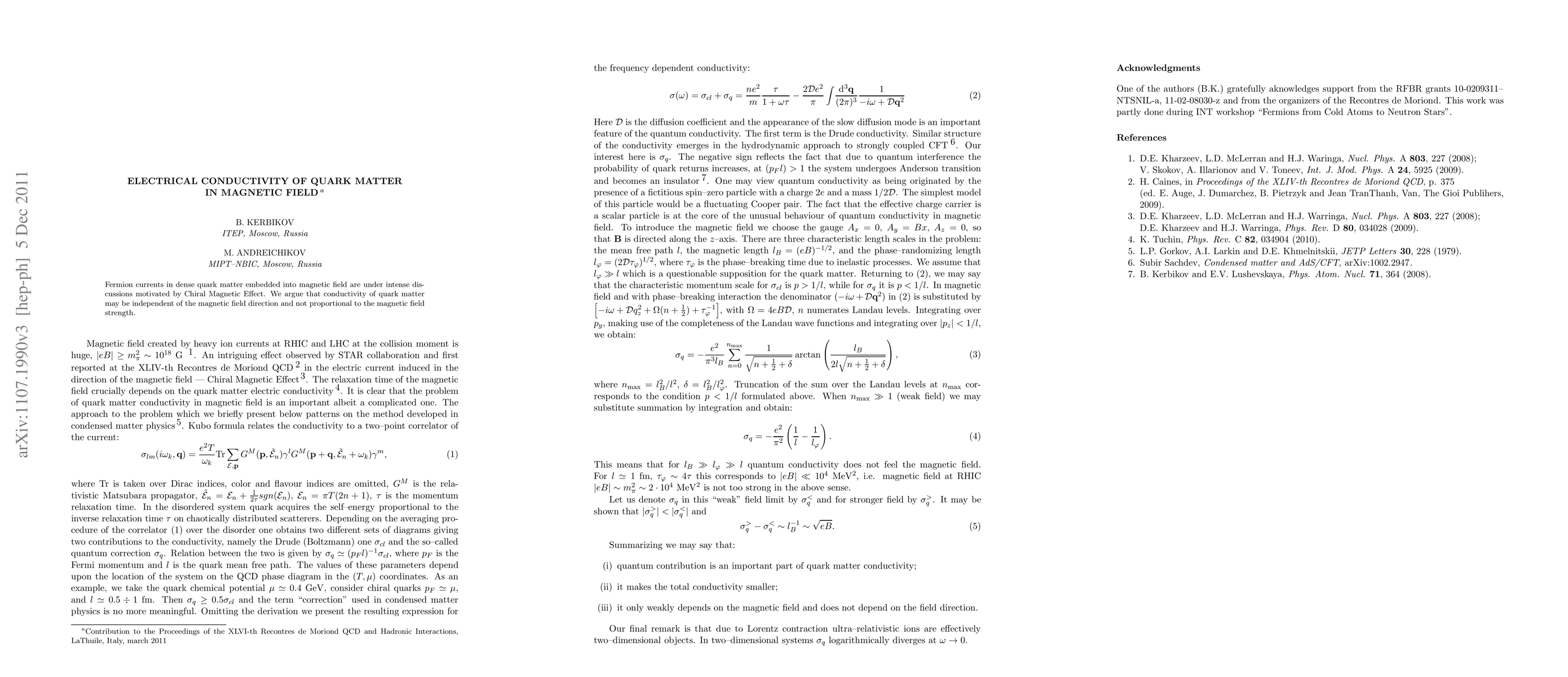 Summary: This study challenges the conventional view that the electrical conductivity of quark matter in a magnetic field is direction-dependent and proportional to the field strength, suggesting instead that it may remain constant regardless of the magnetic field orientation.