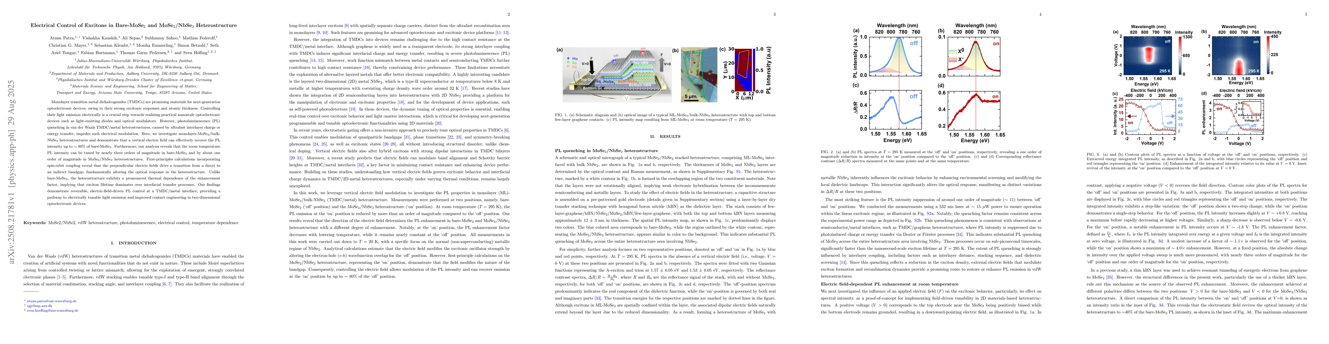Monolayer transition metal dichalcogenides (TMDCs) are promising materials for next-generation optoelectronic devices, owing to their strong excitonic responses and atomic thickness. Controlling their light emission electrically is a crucial step towards realizing practical nanoscale optoelectronic devices such as light-emitting diodes and optical modulators. However, photoluminescence (PL) quenching in van der Waals TMDC/metal heterostructures, caused by ultrafast interlayer charge or energy transfer, impedes such electrical modulation. Here, we investigate monolayer-MoSe2/bulk-NbSe2 heterostructures and demonstrate that a vertical electric field can effectively recover the PL intensity up to ~ 80% of bare-MoSe2. Furthermore, our analysis reveals that the room temperature PL intensity can be tuned by nearly three orders of magnitude in bare-MoSe2 and by about one order of magnitude in MoSe2/NbSe2 heterostructures. First-principles calculations incorporating spin-orbit coupling reveal that the perpendicular electric fields drive a transition from a direct to an indirect bandgap, fundamentally altering the optical response in the heterostructure. Unlike bare-MoSe2, the heterostructure exhibits a pronounced thermal dependence of the enhancement factor, implying that exciton lifetime dominates over interfacial transfer processes. Our findings demonstrate reversible, electric-field-driven PL control at a TMDC/metal interface, providing a pathway to electrically tunable light emission and improved contact engineering in two-dimensional optoelectronic devices.