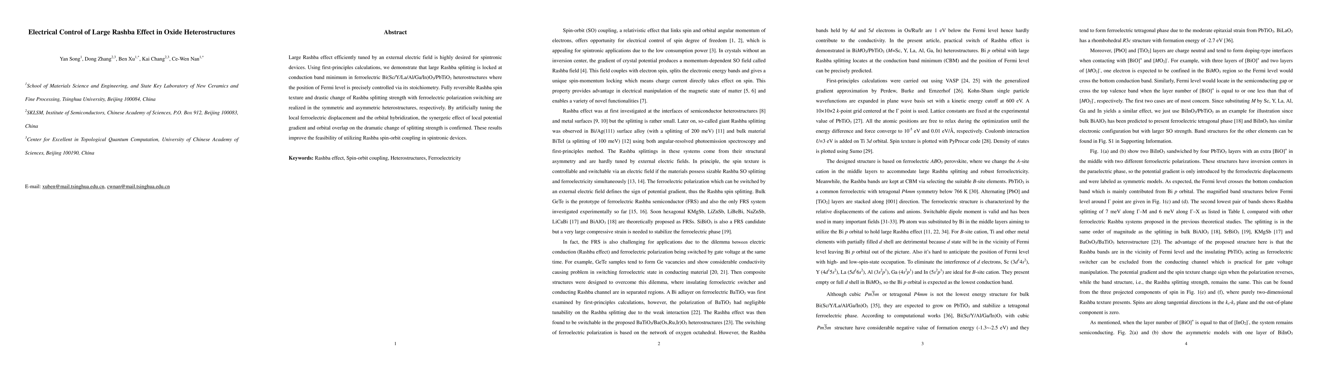 This paper demonstrates the electrical control of a large Rashba effect in ferroelectric oxide heterostructures via precise Fermi level tuning. The study confirms fully reversible Rashba spin texture and significant changes in Rashba splitting strength through ferroelectric polarization switching, enhancing the potential for spintronic applications.