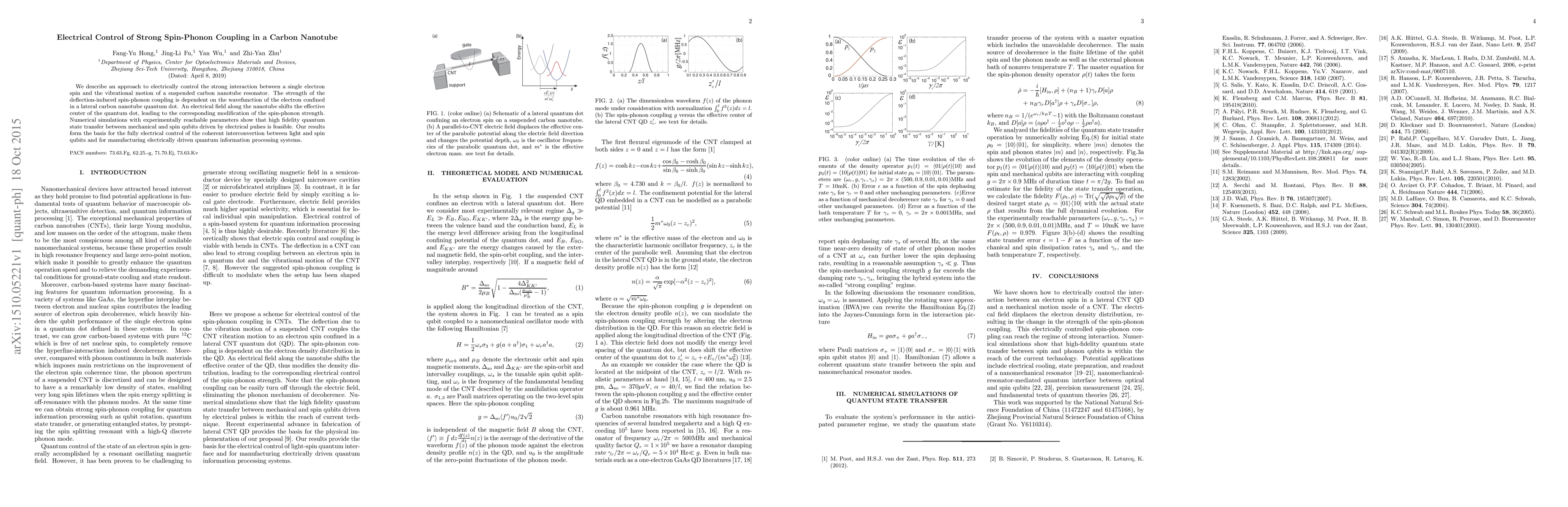 This research demonstrates an electrically controllable interaction between electron spin and phonon vibrations in a carbon nanotube, utilizing a lateral quantum dot. By shifting the effective center of the quantum dot with an electrical field, the spin-phonon coupling strength can be modified, enabling high-fidelity quantum state transfers and paving the way for electrically driven quantum information processing systems.