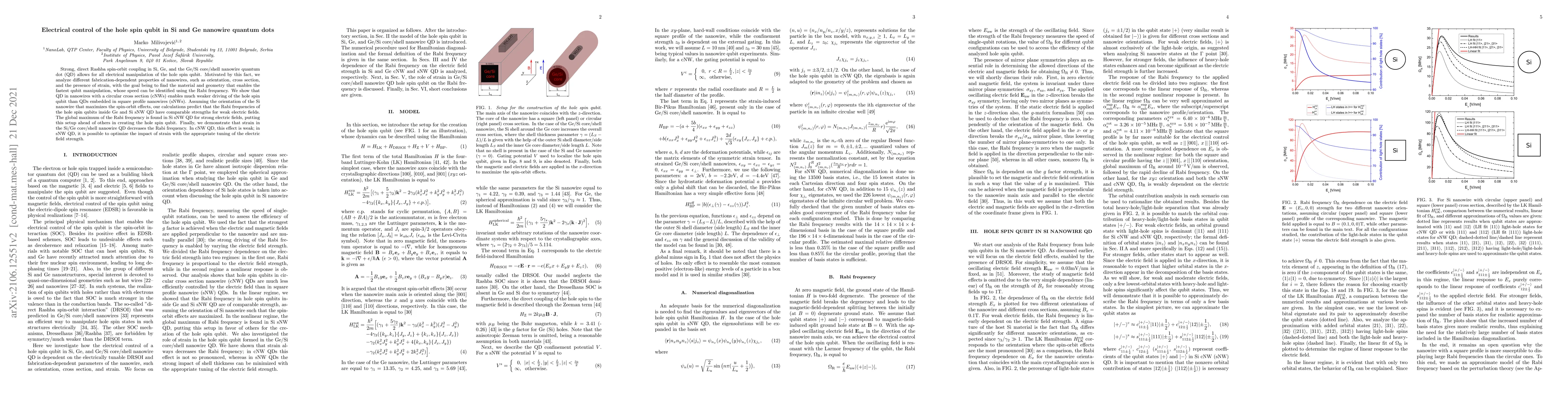 This paper investigates the electrical control of hole spin qubits in Si and Ge nanowire quantum dots, finding that square-profile nanowires (sNWs) enable faster qubit manipulation compared to circular-profile nanowires (cNWs). The study concludes that Si sNW quantum dots exhibit the highest Rabi frequency, especially under strong electric fields, making them optimal for spin qubit control.