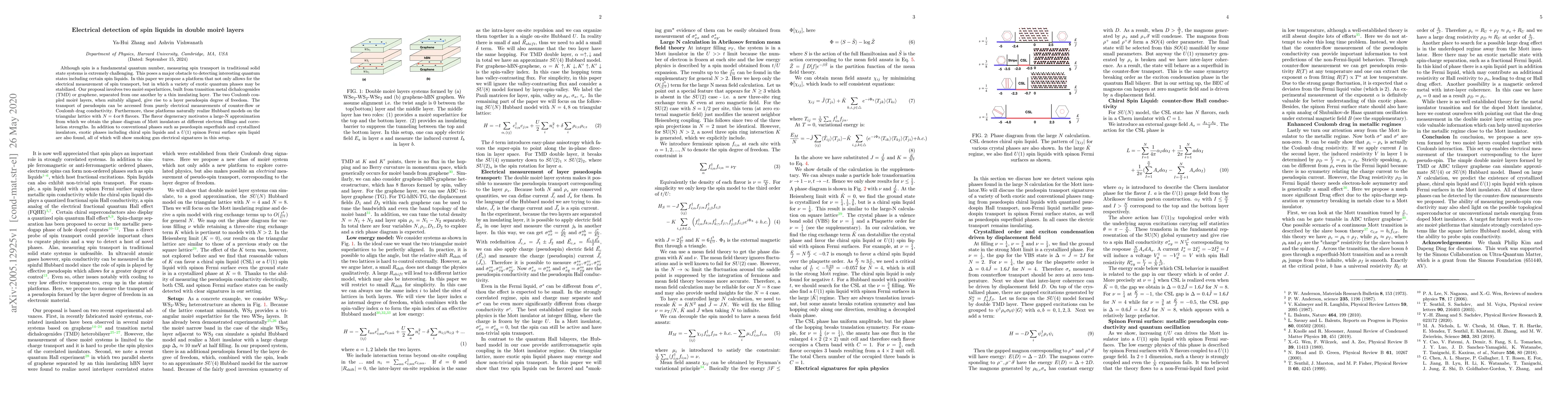 This paper proposes a novel platform using double moiré layers of transition metal dichalcogenides or graphene to electrically detect spin transport and stabilize exotic quantum phases like spin liquids. Electrical measurements of counter-flow or Coulomb drag conductivity reveal pseudospin transport, revealing phases such as chiral spin liquids and $U(1)$ spinon Fermi surface spin liquids.