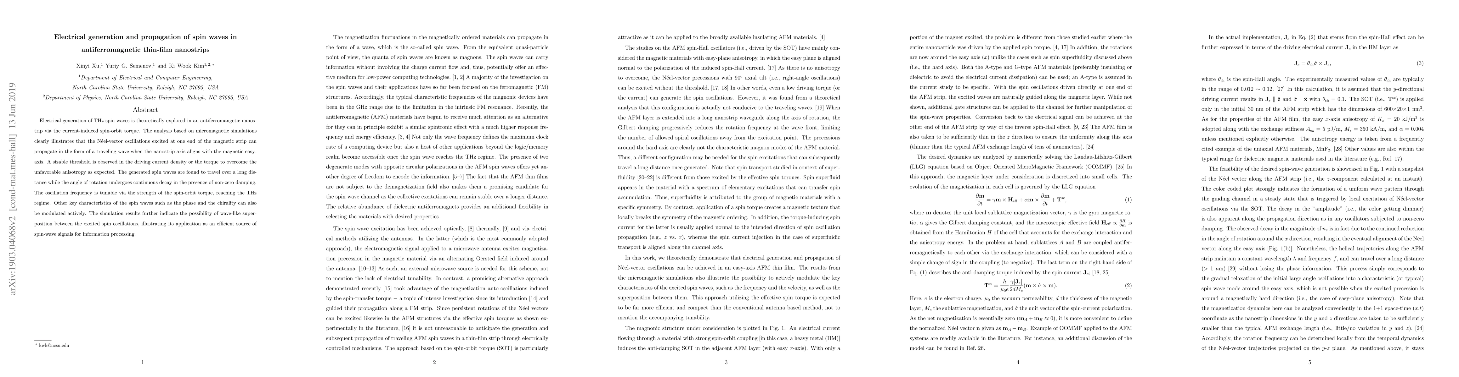 Researchers successfully generated and propagated THz spin waves in antiferromagnetic thin films using electrical currents, opening the door to new spin-wave signals for information processing.
