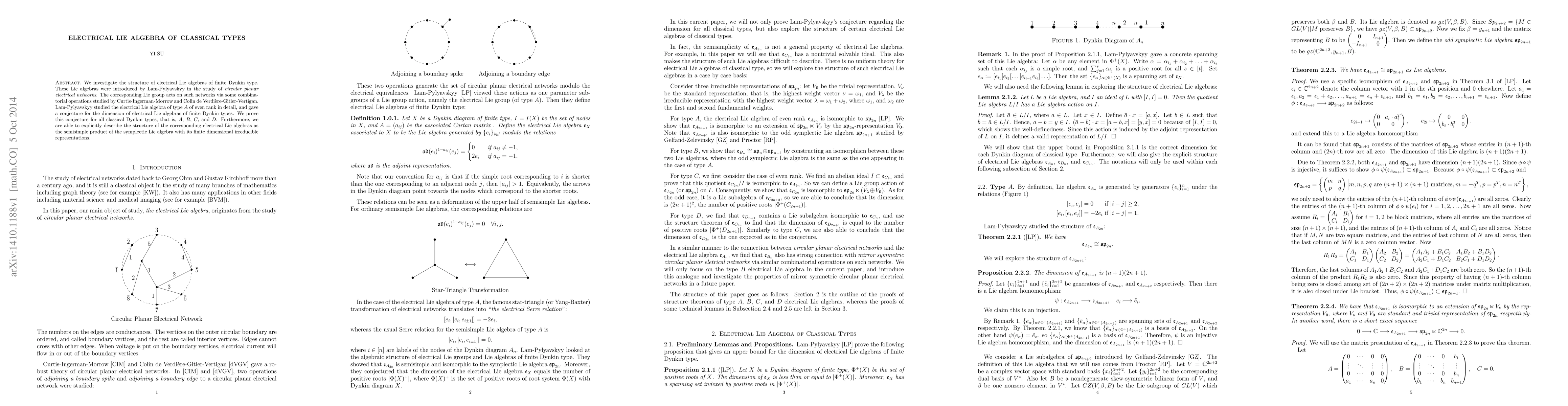 This paper proves the conjecture regarding the dimension of electrical Lie algebras of classical Dynkin types ($A$, $B$, $C$, and $D$), introduced by Lam-Pylyavskyy in the context of circular planar electrical networks. The authors also describe these algebras as semisimple products involving the symplectic Lie algebra and its finite-dimensional irreducible representations.