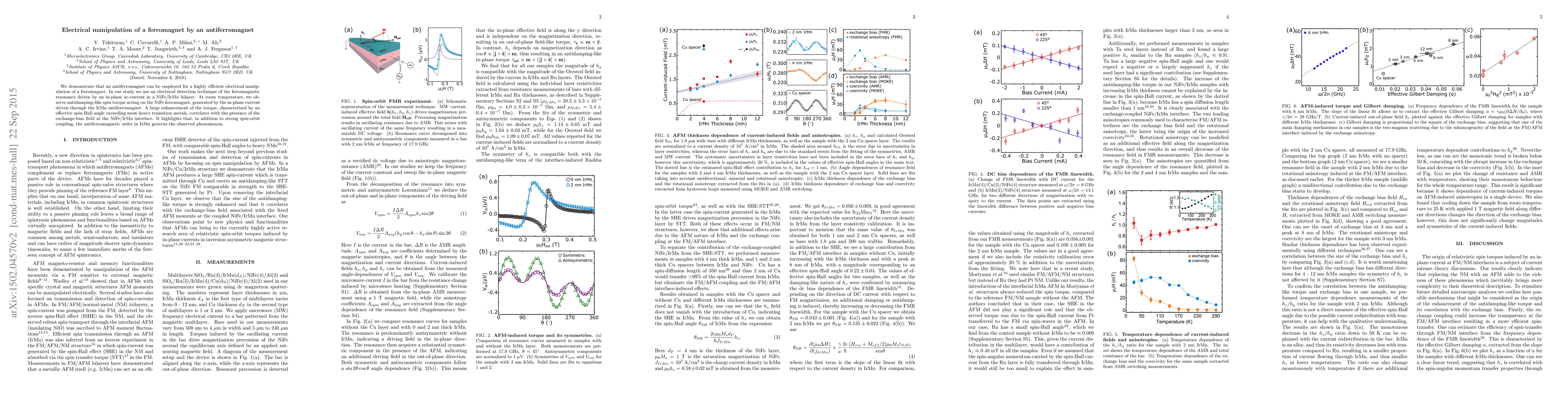 This study shows that an antiferromagnet, specifically IrMn, can efficiently manipulate a ferromagnet, NiFe, using electrical means. The research reveals a significant antidamping-like spin torque on the NiFe layer, driven by an in-plane ac-current through the IrMn layer, with the effect enhanced by the exchange-bias field at their interface.