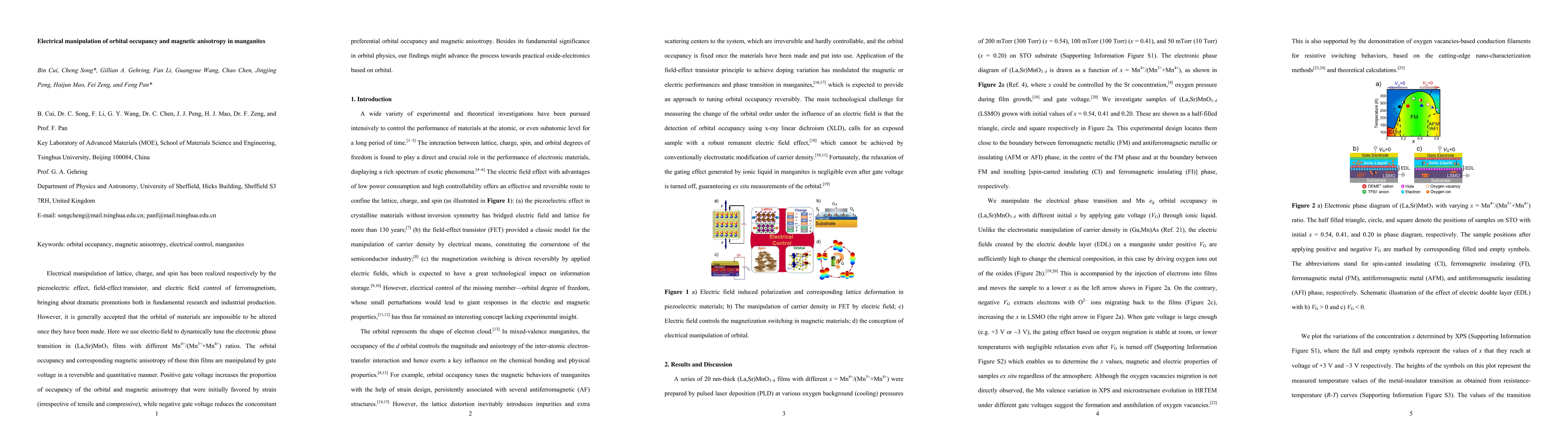 This paper demonstrates that electric fields can dynamically manipulate orbital occupancy and magnetic anisotropy in (La,Sr)MnO3 manganite films, reversing the conventional belief that orbitals are fixed. The study shows that gate voltage can reversibly adjust these properties, with positive voltages enhancing and negative voltages diminishing the orbital occupancy and magnetic anisotropy initially favored by strain.