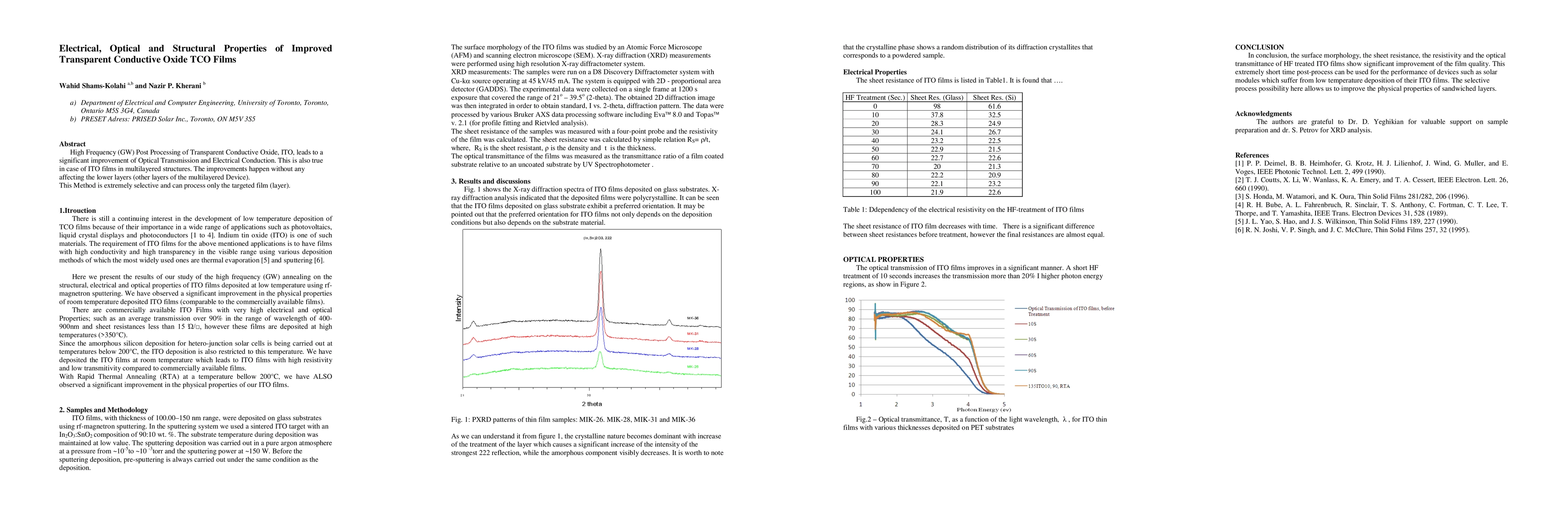 Summary: High-frequency post-processing enhances the optical transmission and electrical conduction of Transparent Conductive Oxide (ITO) films, even in multilayered devices, without affecting other layers, demonstrating high selectivity in targeted film improvement.
