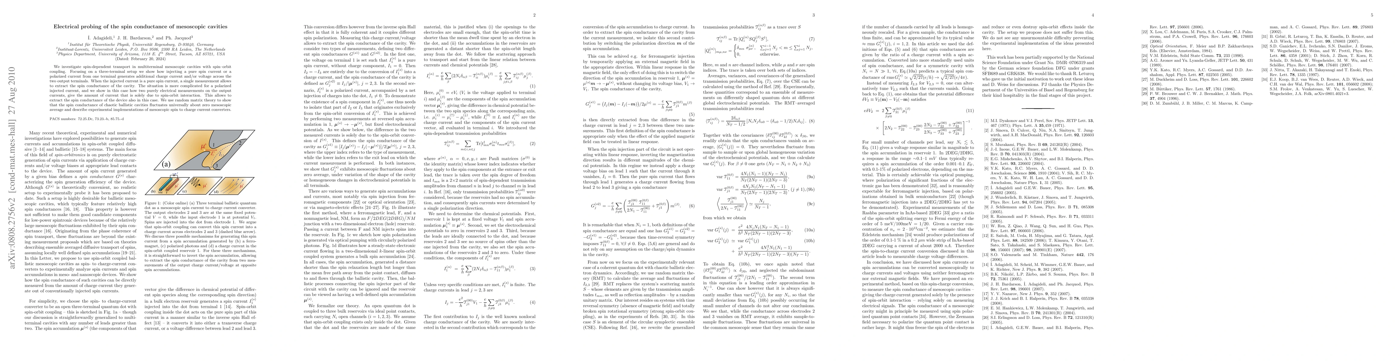 This paper explores spin-dependent transport in mesoscopic cavities with spin-orbit coupling, demonstrating how spin currents generate charge currents via the inverse spin Hall effect. It uses random matrix theory to explain universal fluctuations in spin conductance and proposes electrical methods for measuring spin conductance in chaotic ballistic cavities.