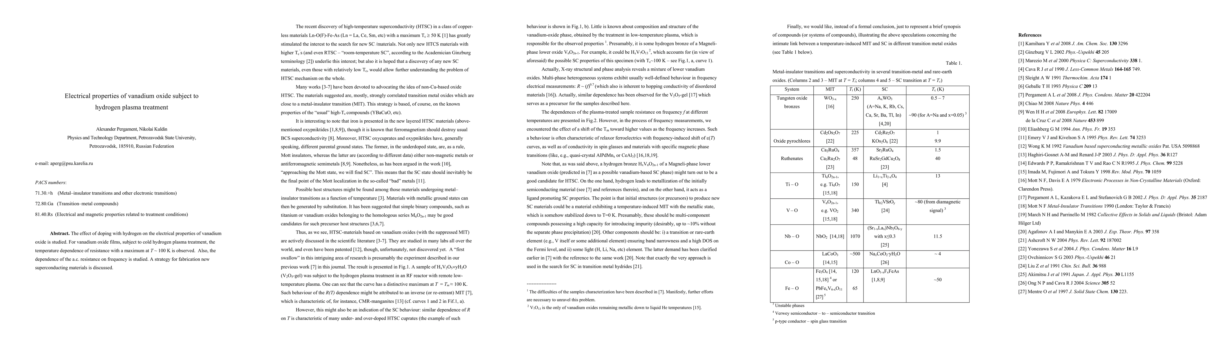 Summary: This study investigates the impact of hydrogen plasma treatment on the electrical properties of vanadium oxide, revealing a resistance temperature dependence peak at ~100 K and frequency-dependent a.c. resistance, suggesting potential for developing new superconducting materials.