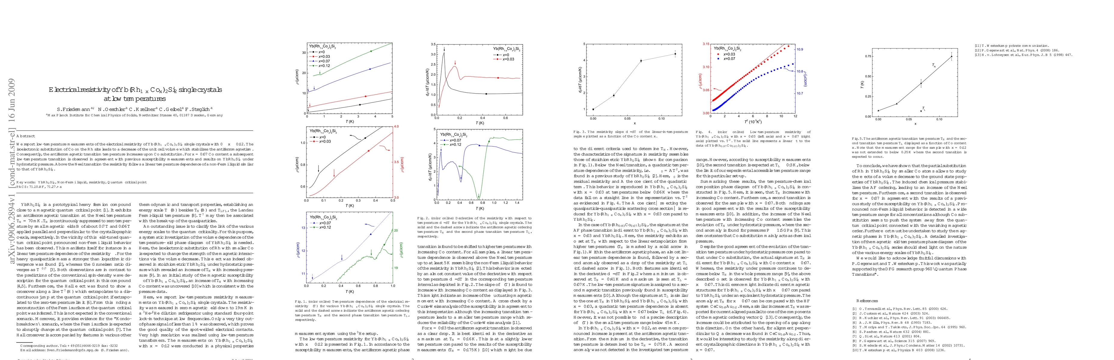 We report low-temperature measurements of the electrical resistivity of Yb(Rh1-xCox)2Si2 single crystals with 0 <= x <= 0.12. The isoelectronic substitution of Co on the Rh site leads to a decrease of the unit cell volume which stabilizes the antiferromagnetism. Consequently, the antiferromagnetic transition temperature increases upon Co substitution. For x = 0.07 Co content a subsequent low-temperature transition is observed in agreement with susceptibility measurements and results on YbRh2Si2 under hydrostatic pressure. Above the Neel transition the resistivity follows a non-Fermi liquid behavior similar to that of YbRh2Si2.
