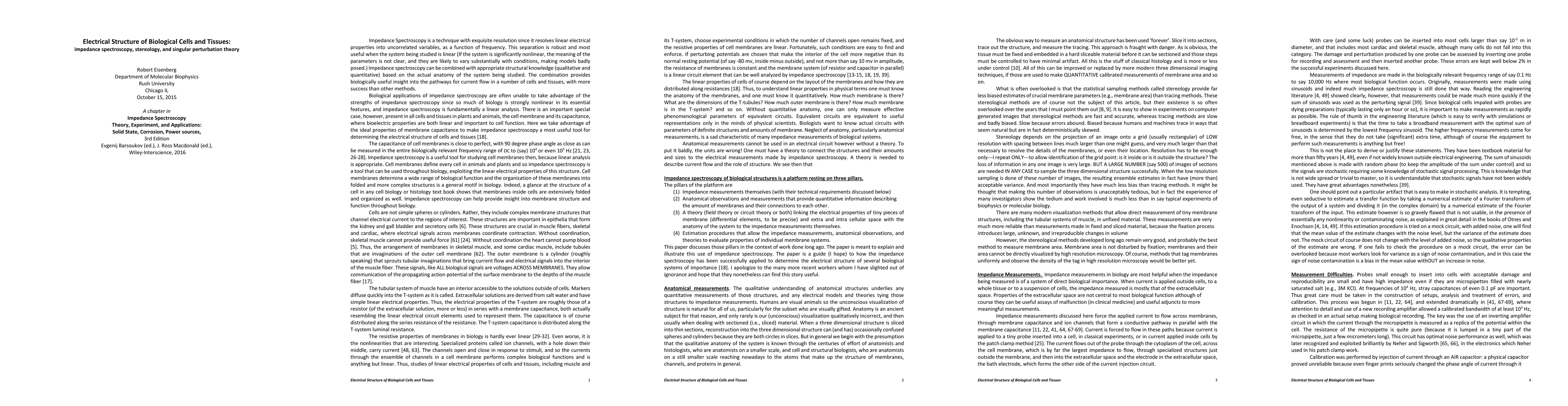 This paper explores the use of impedance spectroscopy to analyze the electrical properties of biological cells and tissues, highlighting its effectiveness in linear systems. The study reveals significant insights into current flow pathways in skeletal muscle, cardiac muscle, and the lens of the eye, and lays the foundation for the bidomain theory, which has since become crucial in the analysis of tissues with substantial extracellular spaces.