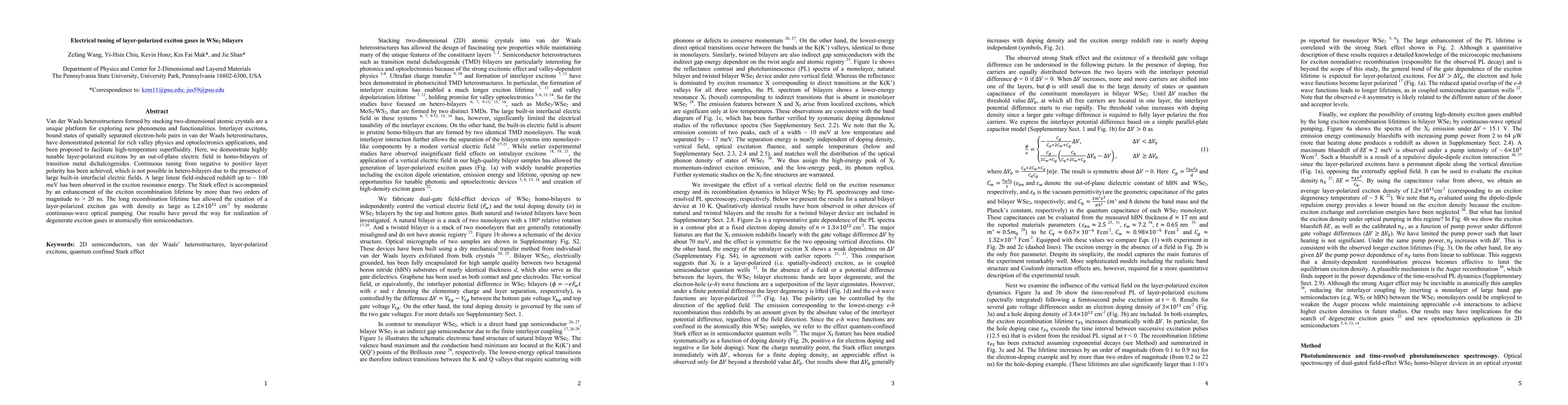 Researchers demonstrate tunable layer-polarized excitons in WSe2 bilayers using an out-of-plane electric field, achieving a large linear field-induced redshift of up to 100 meV and a record-breaking exciton recombination lifetime of over 20 ns.