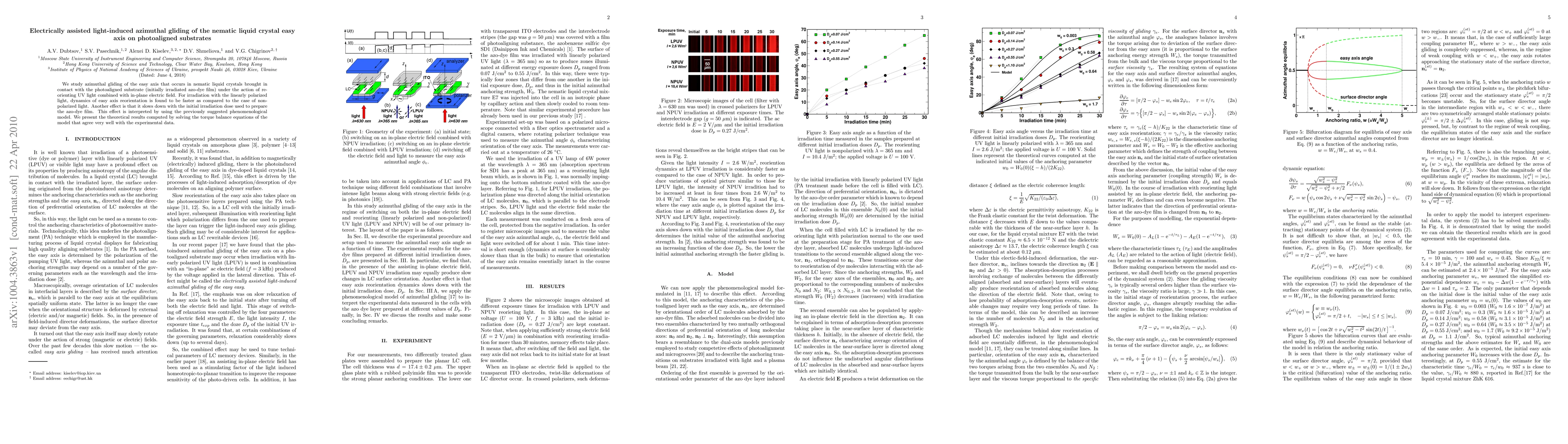 This paper investigates the electrically assisted light-induced azimuthal gliding of the nematic liquid crystal's easy axis on photoaligned substrates, finding that polarized UV light combined with an electric field accelerates the reorientation process. Theoretical modeling of the torque balance equations supports the observed dynamics, which slow with higher initial irradiation doses.
