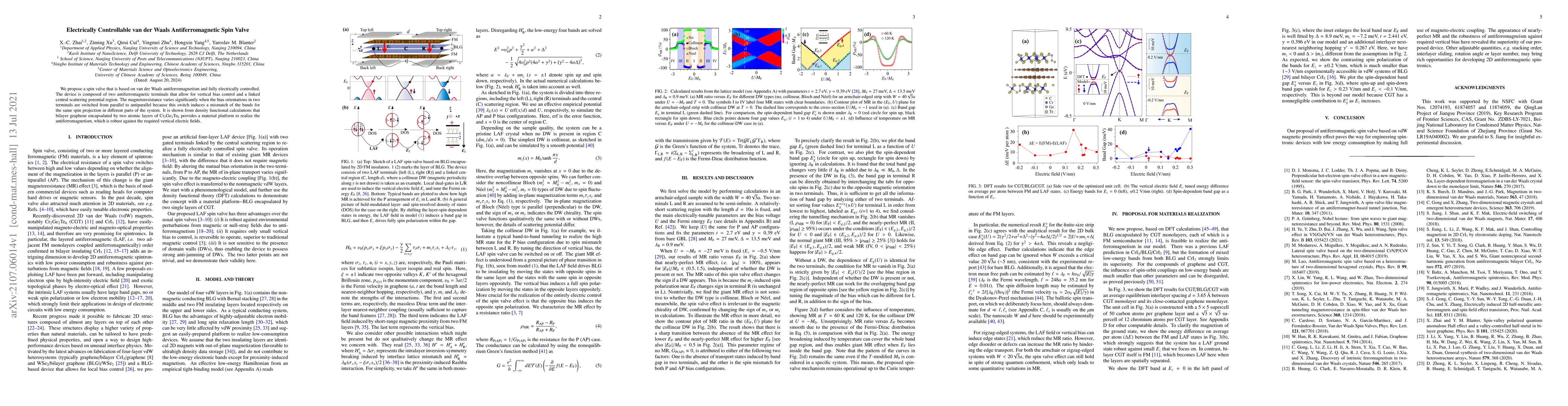 Researchers have proposed a spin valve device that harnesses van der Waals antiferromagnetism, allowing for full electrical control of its properties. The device uses bilayer graphene encapsulated in Cr2Ge2Te6 to create a robust antiferromagnetic state that can be switched by vertical electric fields.