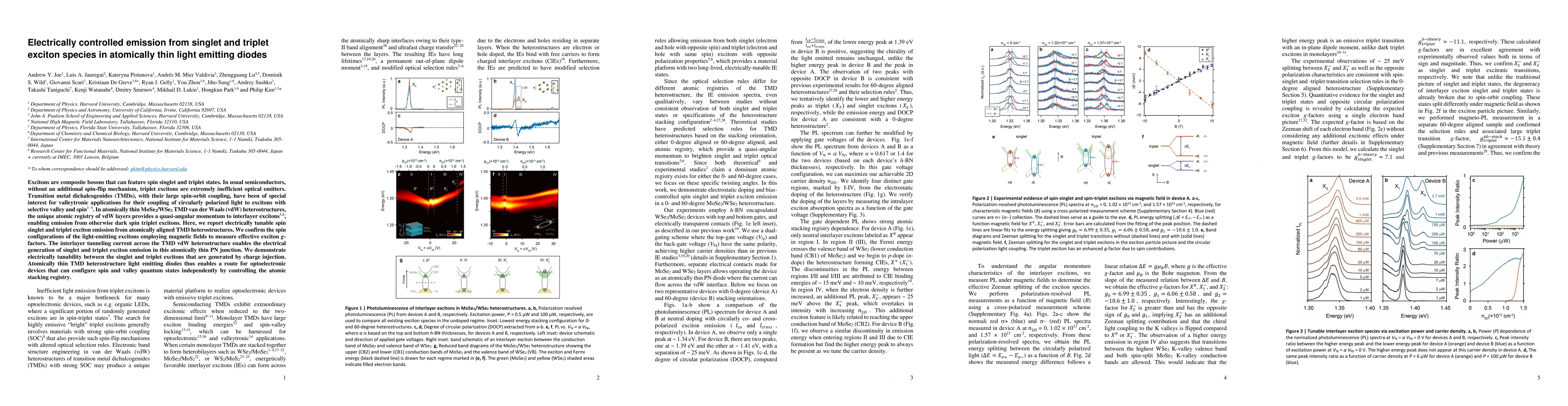 This paper reports electrically tunable emission from both singlet and triplet excitons in atomically thin MoSe$_2$/WSe$_2$ TMD heterostructures, facilitated by interlayer tunneling current. The study demonstrates the potential for optoelectronic devices that can independently control spin and valley quantum states through atomic stacking registry.