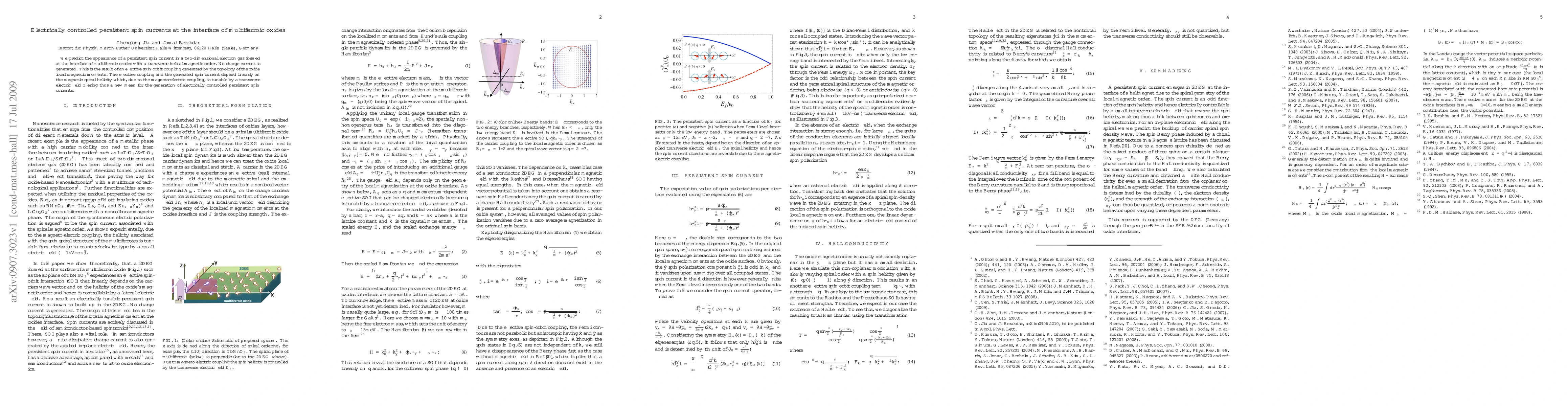 Summary: Researchers predict a persistent spin current in a two-dimensional electron gas at the interface of multiferroic oxides, driven by spin-orbit coupling from local magnetic moments. The spin current, tunable by an electric field, offers a new method for electrically controlled spin current generation without generating charge current.