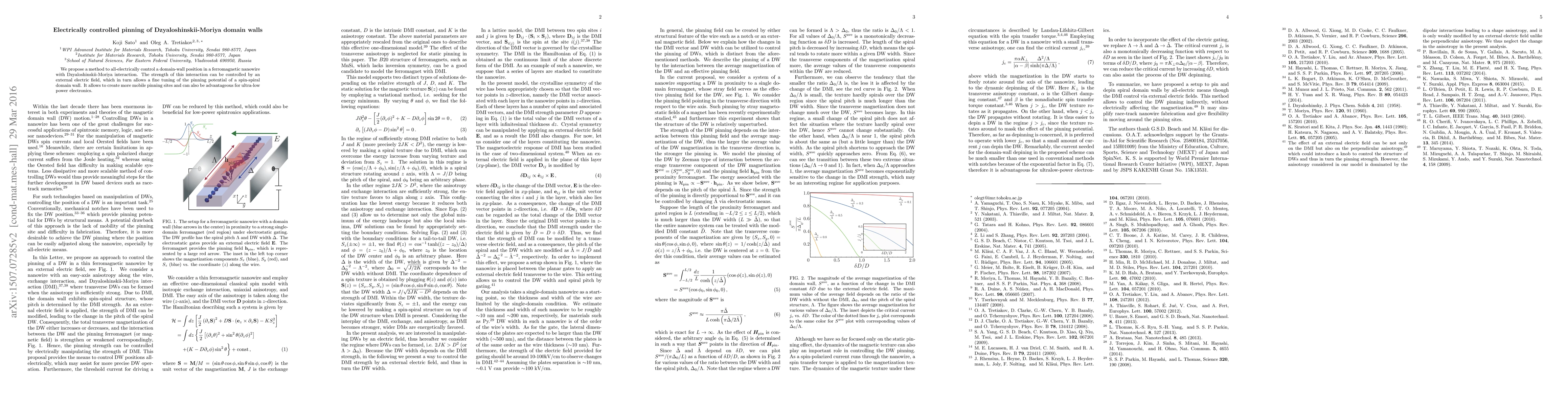 This research proposes an all-electric method to precisely control the position of a domain wall in ferromagnetic nanowires via modulation of Dzyaloshinskii-Moriya interaction using an external electric field, enhancing pinning site mobility and potential applications in low-power electronics.