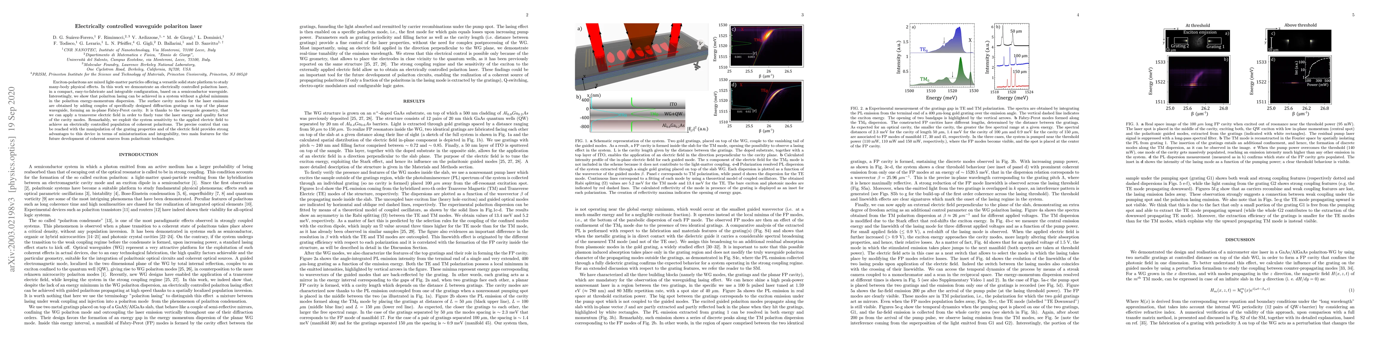 This research demonstrates an electrically controlled polariton laser in a semiconductor waveguide, utilizing diffraction gratings to form an in-plane Fabry-Perot cavity. The study highlights the ability to finely tune the laser energy and cavity modes via an applied electric field, enabling precise control over the coherent polariton population.