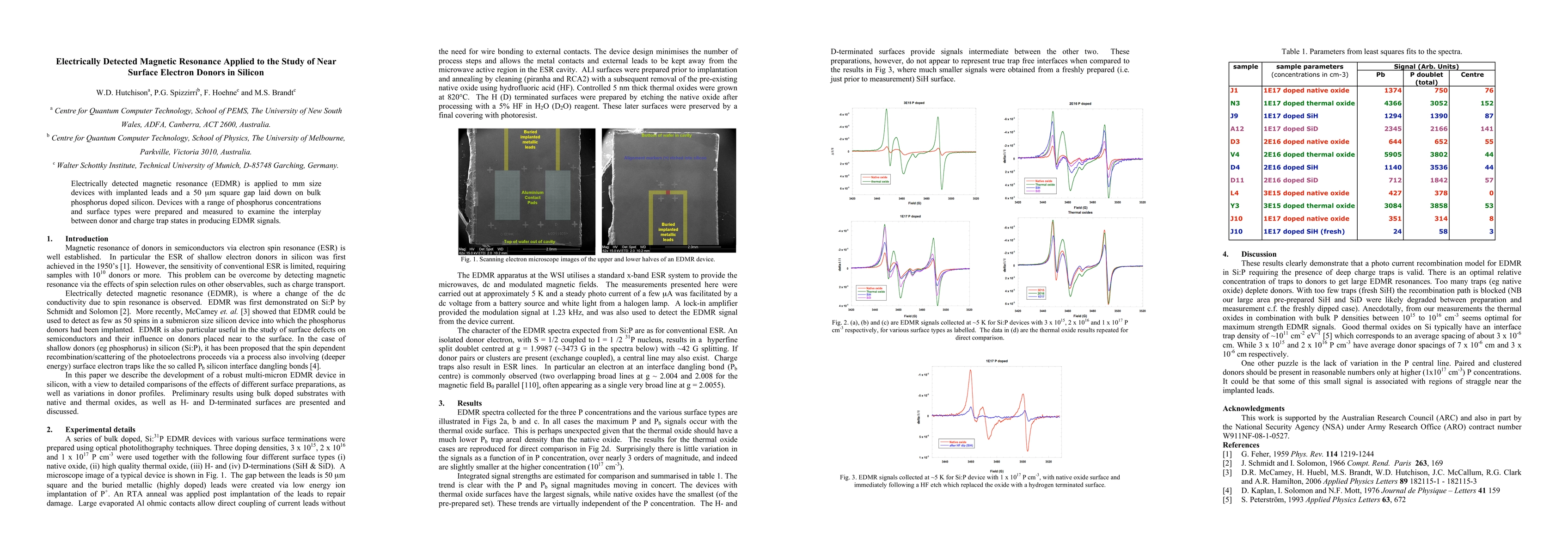 Electrically detected magnetic resonance (EDMR) is applied to mm size devices with implanted leads and a 50 micron square gap laid down on bulk phosphorus doped silicon. Devices with a range of phosphorus concentrations and surface types were prepared and measured to examine the interplay between donor and charge trap states in producing EDMR signals.