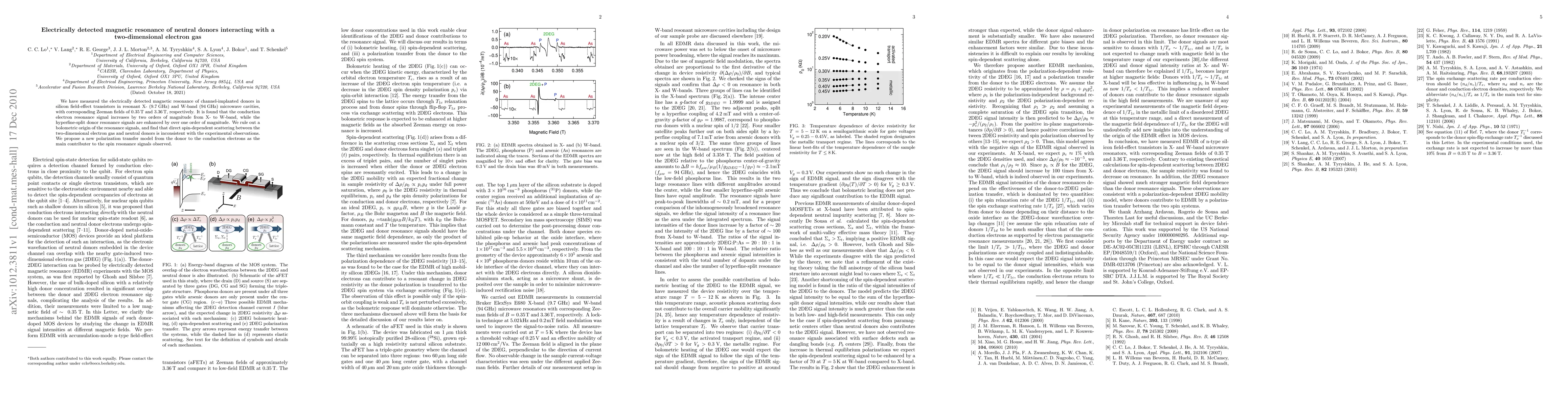 This paper investigates electrically detected magnetic resonance in silicon field-effect transistors with channel-implanted donors, revealing a significant increase in conduction electron resonance signals from X- to W-band microwave cavities. The study proposes a new polarization transfer model to explain the observed spin resonance signals, ruling out direct spin-dependent scattering and bolometric origins.