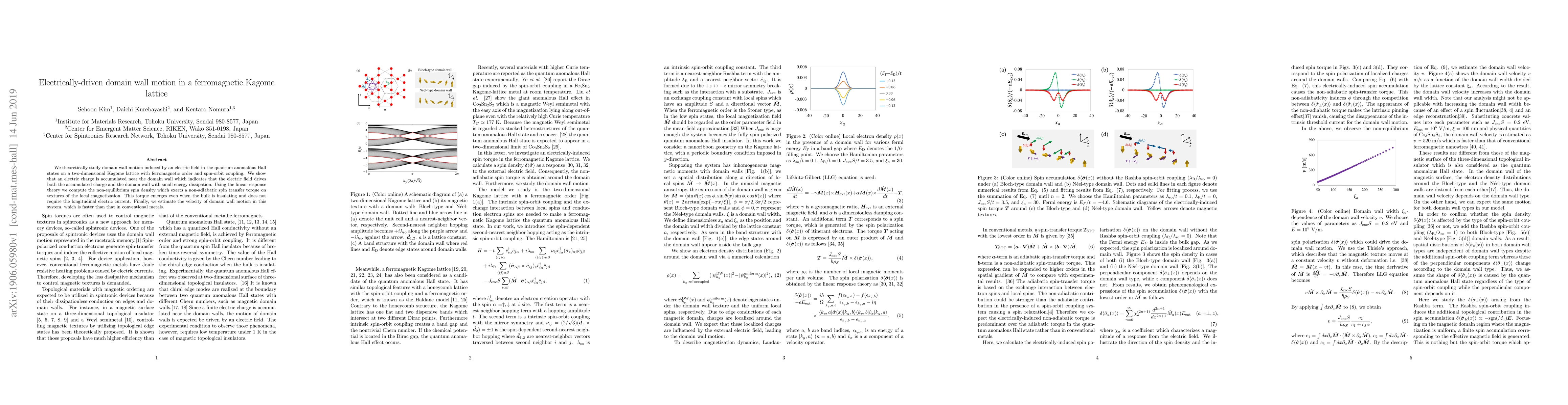 This research theoretically explores electrically-driven domain wall motion in a quantum anomalous Hall state on a ferromagnetic Kagome lattice, demonstrating that an electric field drives domain wall movement with minimal energy loss and minimal reliance on longitudinal current. The study estimates that domain wall velocity in this system is faster than in conventional metals.