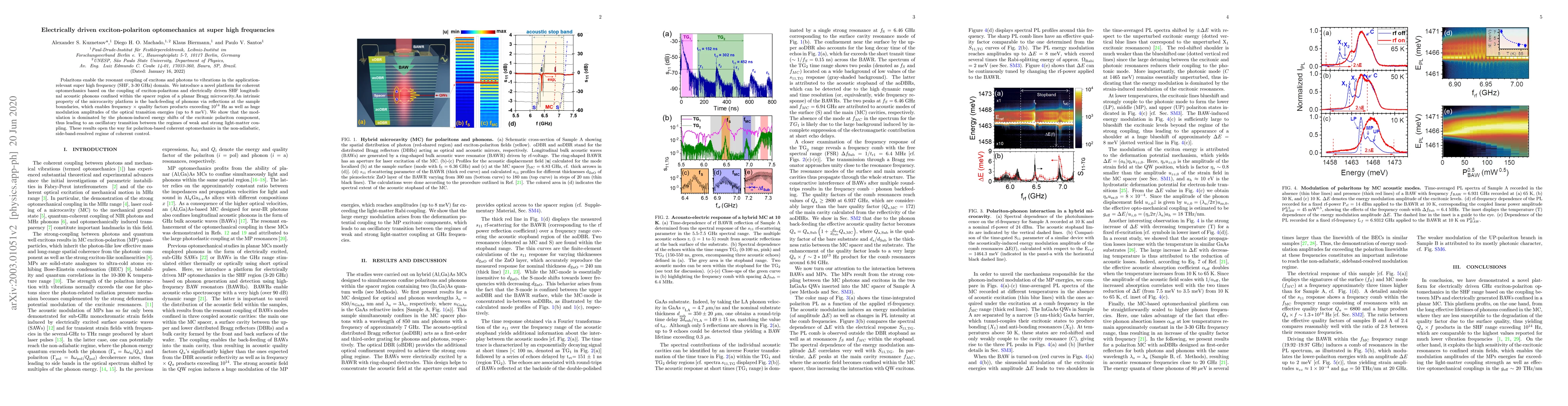 The paper presents a novel microcavity platform that couples exciton-polaritons with electrically driven SHF acoustic phonons, enabling unprecedented frequency x quality factors and modulation amplitudes.