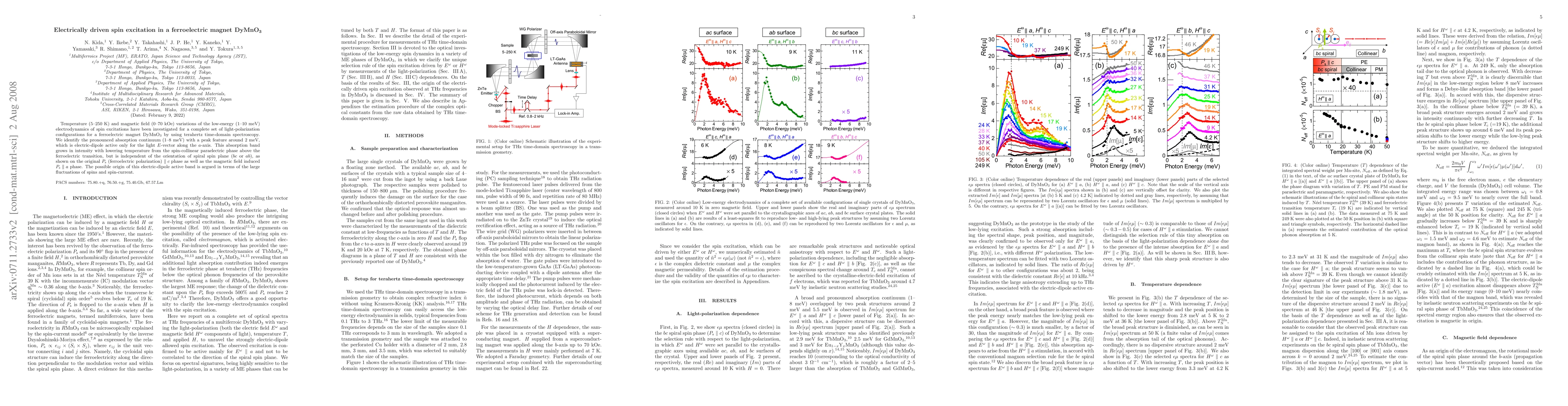 Temperature (5--250 K) and magnetic field (0--70 kOe) variations of the low-energy (1--10 meV) electrodynamics of spin excitations have been investigated for a complete set of light-polarization configurations for a ferroelectric magnet DyMnO$_3$ by using terahertz time-domain spectroscopy. We identify the pronounced absorption continuum (1--8 meV) with a peak feature around 2 meV, which is electric-dipole active only for the light $E$-vector along the a-axis. This absorption band grows in intensity with lowering temperature from the spin-collinear paraelectric phase above the ferroelectric transition, but is independent of the orientation of spiral spin plane ($bc$ or $ab$), as shown on the original $P_{\rm s}$ (ferroelectric polarization) $\parallel c$ phase as well as the magnetic field induced $P_{\rm s}\parallel a$ phase. The possible origin of this electric-dipole active band is argued in terms of the large fluctuations of spins and spin-current.